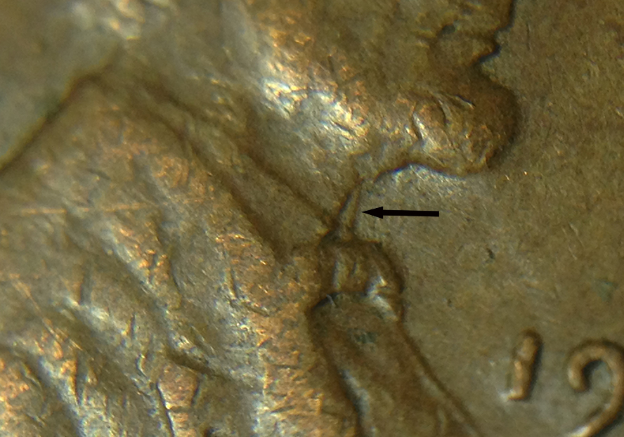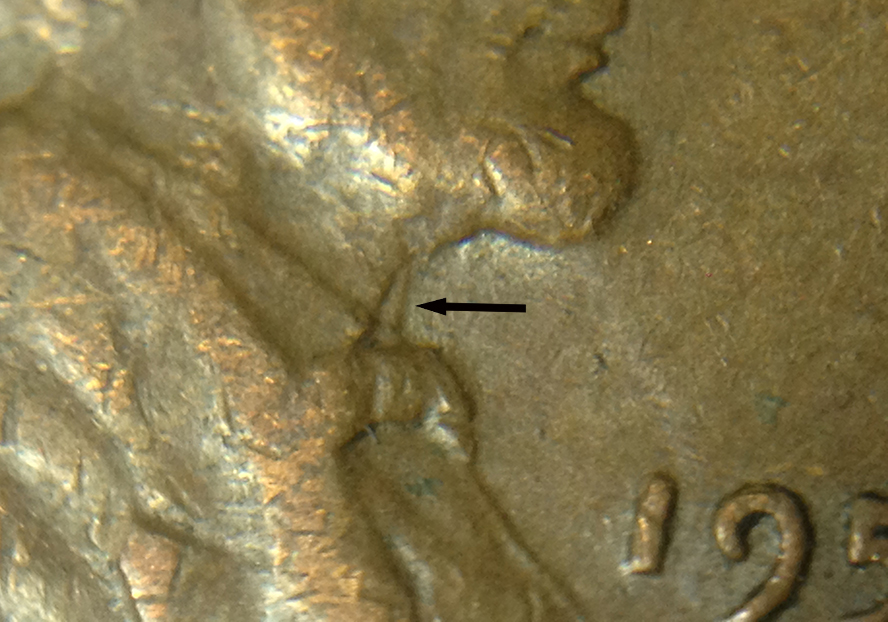 I can't say for sure from the pic, but it does look similar to the 1951 listed on maddieclashes.com. It would be from the vertical bar of the N in CENT. Here is the link to the 1951. http://www.maddieclashes.com/TDC-1c-1951-01.html