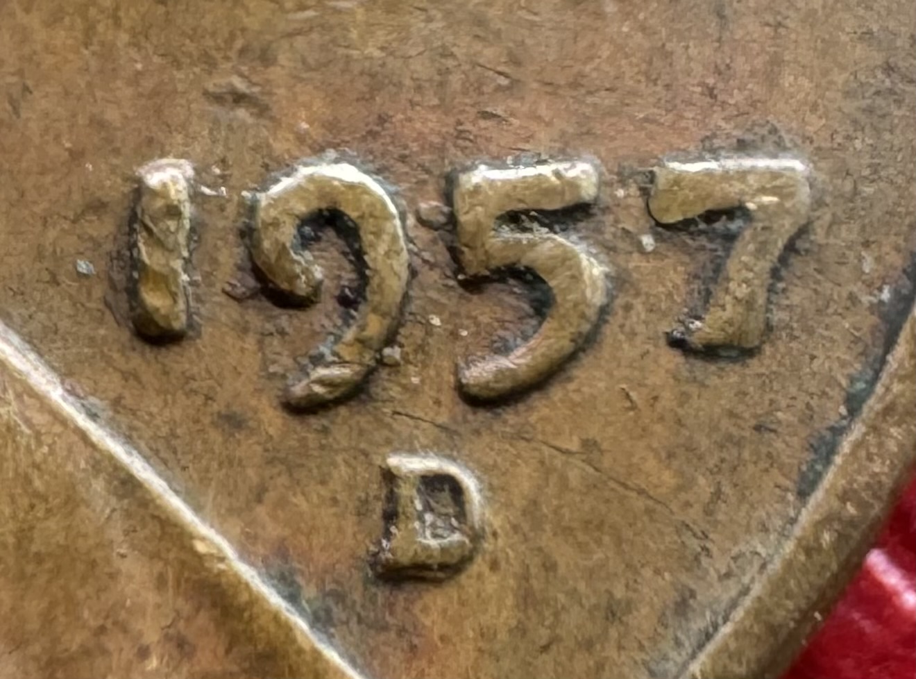 Finally got around to searching through bags of Wheat Cents that have sat in my desk drawer for years. Didn’t realize that it would take all day, but was a day well spent. These were mostly circulation finds that I’ve been setting aside without thoroughly examining. I did pull several really nice known RPM varieties, including a couple 1953-D 001’s and a 1957-D 003. This 1951-D caught my eye as it has what appears to be a misplaced D behind the 9. The dimensions are about the size of a standard mintmark and it looks too clean to be a cud. I haven’t been able to identify it as a known variety. Has anyone encountered something similar? Any input is welcome and greatly appreciated.