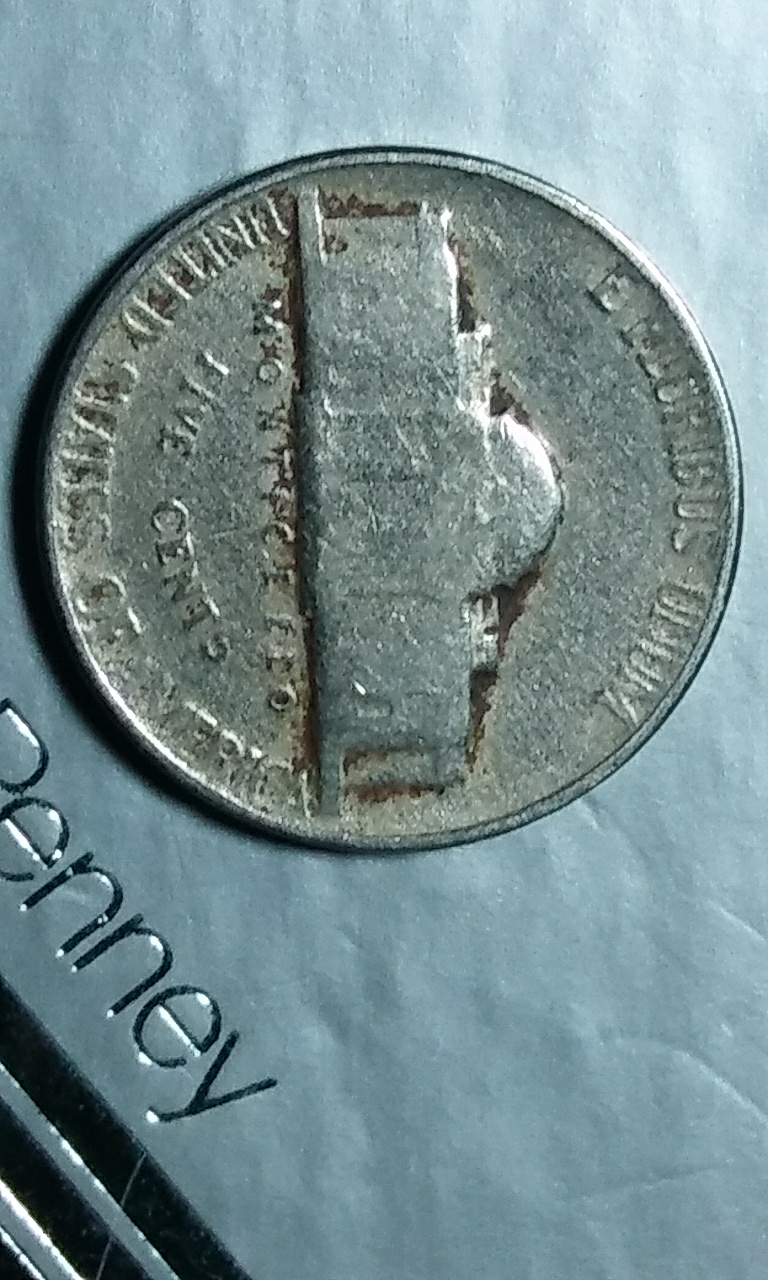 What large P over the dome? There are 1953 no P hennings. A decade late? He made these nickels in the 50s. 1939, 1946, 1947 and 1953 no P mint mark are more difficult to find according to err-ref.com