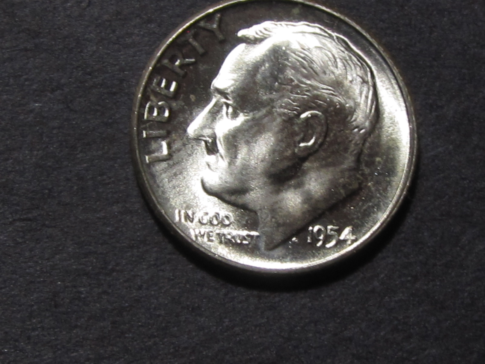 Found this going through a roll of 1954 dimes. About 7 total of them were in the roll. Guess that is a die chip right under Roosevelt's nose. Sorry about the poor picture but best I could do.