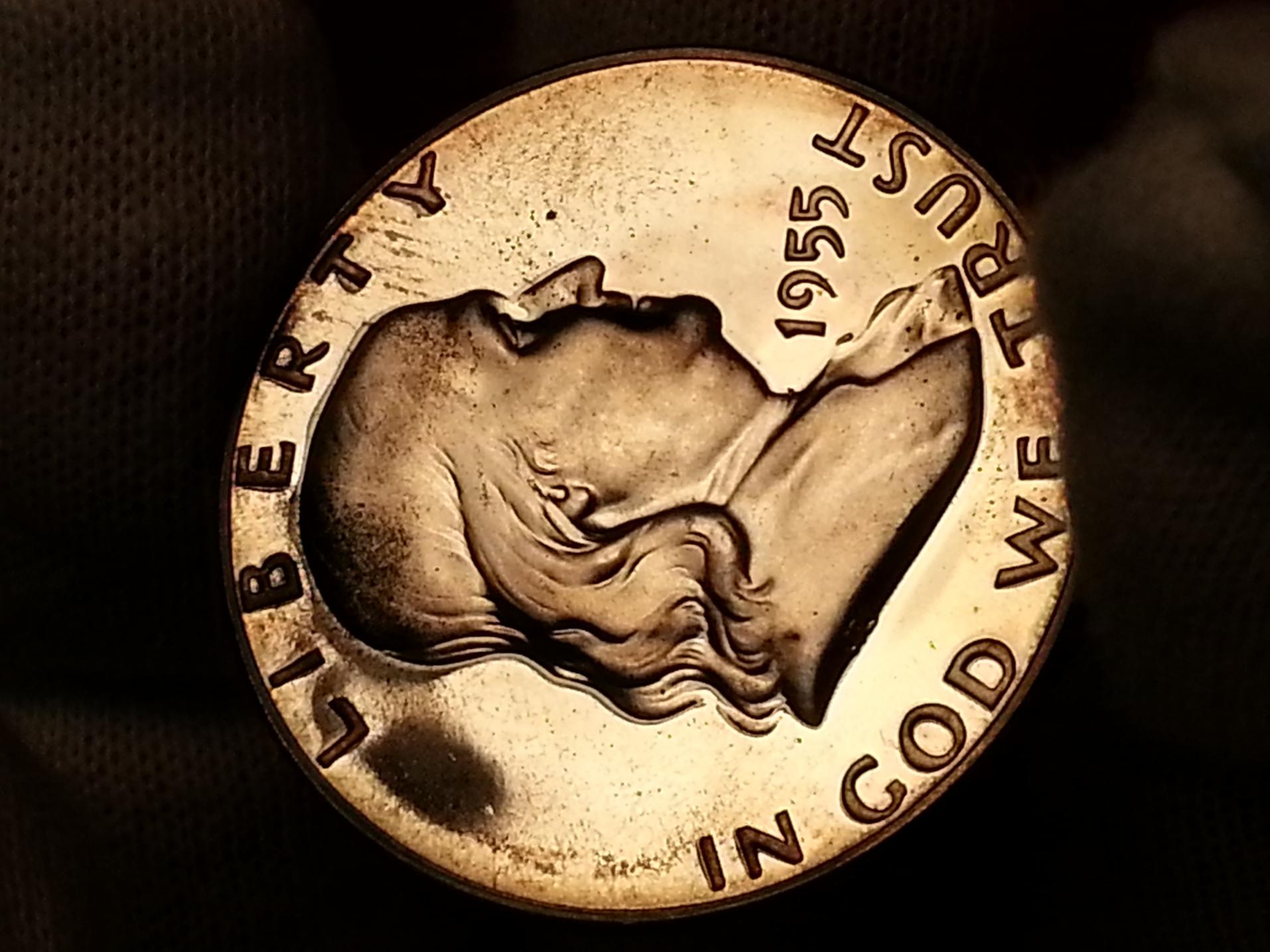 Ok so I bought a group of proof sets (53, 54, 55) assembled in a plastic clear capitol style holder. It was clear right away that the entire 55 set was exceptional, with cameos and possible deep cams on the Franklin, Nickel, and wheat-back. I have hemmed and hawed enough and have been unable to answer my own question so it is now left unto you, the throbbing brain that is the internet. Thank you for thinking for me, tis greatly appreciated. Obverse images are under halogen