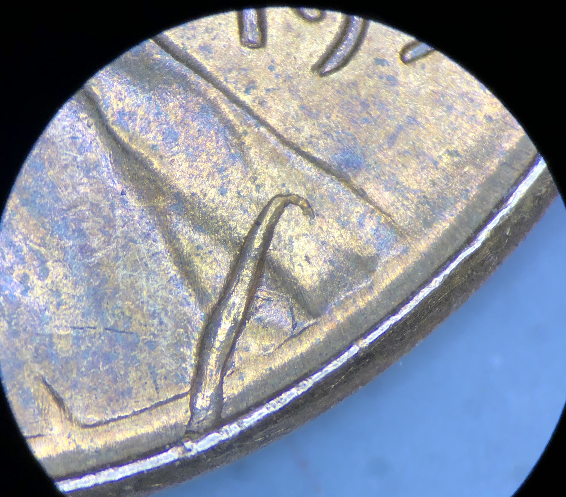 I’m seeing a few different things on this one. Would love to hear from everyone. Obverse: -Struck through something I believe. No raised edges and looks like something peeled right out of there. -Die clash by neck. The area between the line and neck is recessed. -(common)Die cracks on head and above V.D.B. Clipped planchet? Both sides appear flat but not smushed. Edge appears to be folded into itself, possibly from the rimming process? Reverse: -More of the common die cracks on the left wheat and “T” in cent. Weight: 2.9g