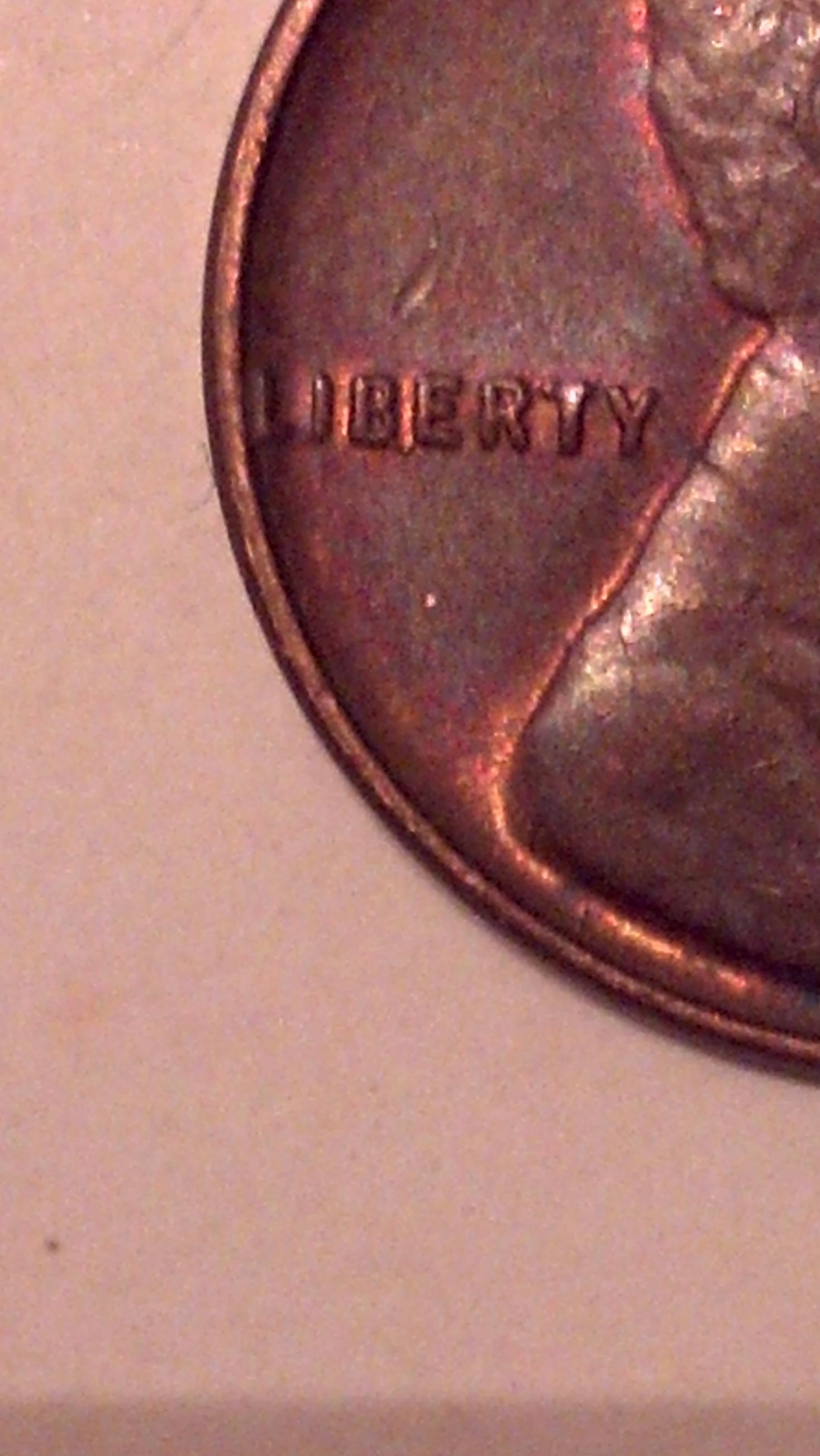 Hey everyone, i was looking through a bag of wheats i bought and came across a 1955 penny with something irregular in between the b and e in liberty. Its a curved shaped die clash maybe?? Would be my best guess i really do not know i checked coppercoins.com for varieties with no luck. Any help is appreciated on what it is. And sorry i know the photos are not great i only have my phone for a camera.