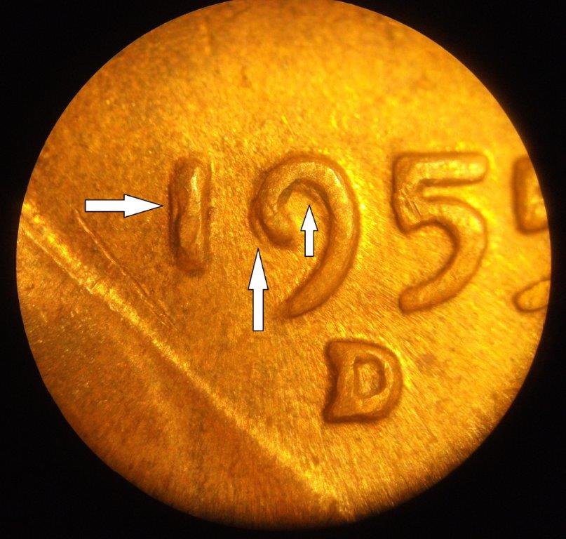 I recently purchased a 5000 count wheat cent bag. I am about 3/4 of the way through it now and I found 3 of these. It is a 1955D DDO # 1 (doubled die obverse). There is doubling on the eyelid, 19 in the date, the vest, and the ear. My picture of the ear wasn't clear enough to post. This variety is listed in the Cherrypickers Guide and it is an interesting doubled die to look at.
