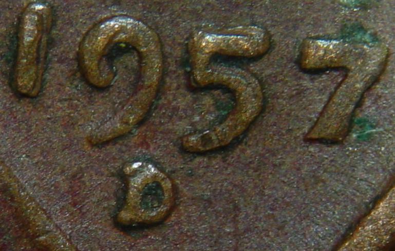I am relatively new to the microscopic world of Lincoln cents, but am enjoying learning about RPM's, etc. Here are a couple of photos of a 1957-D cent with what looks like a double-punched date. Both the 1 and the 5 seem to have a smaller digit atop a larger one, while the other digits look comparatively normal. Would the effect on the 1 and 5 be from punches of different depth? There is also something funky going on with the right side of the bow tie.