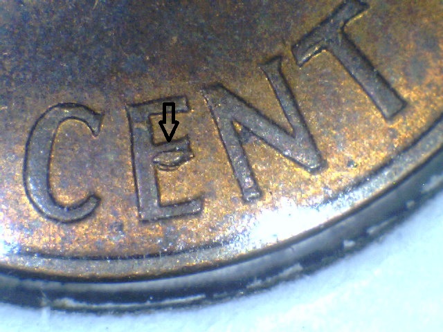 Die chips were common in the 40's, 50's and 60's cents. No real premium for them. I have buckets full that I've collected.