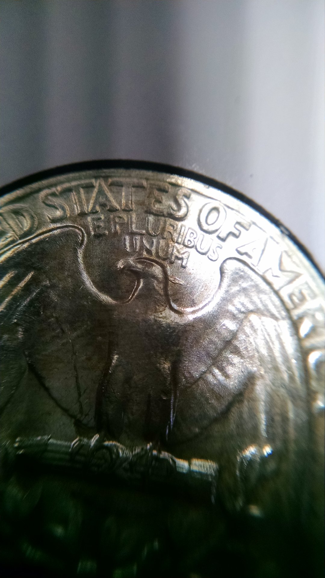 Actually you posted a strike thru or possibly damage on the inner wing. What I am talking about is the crack on the outside wing from United to Quarter. And which is it 901 or 501?