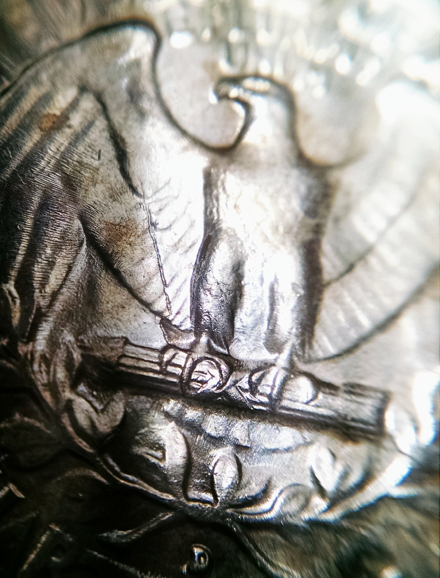 Kinda hard to follow your post but I will tell you that I see what looks like a die crack on the inside of the left wing along the outside of the left-wing and possibly behind the Eagles head.