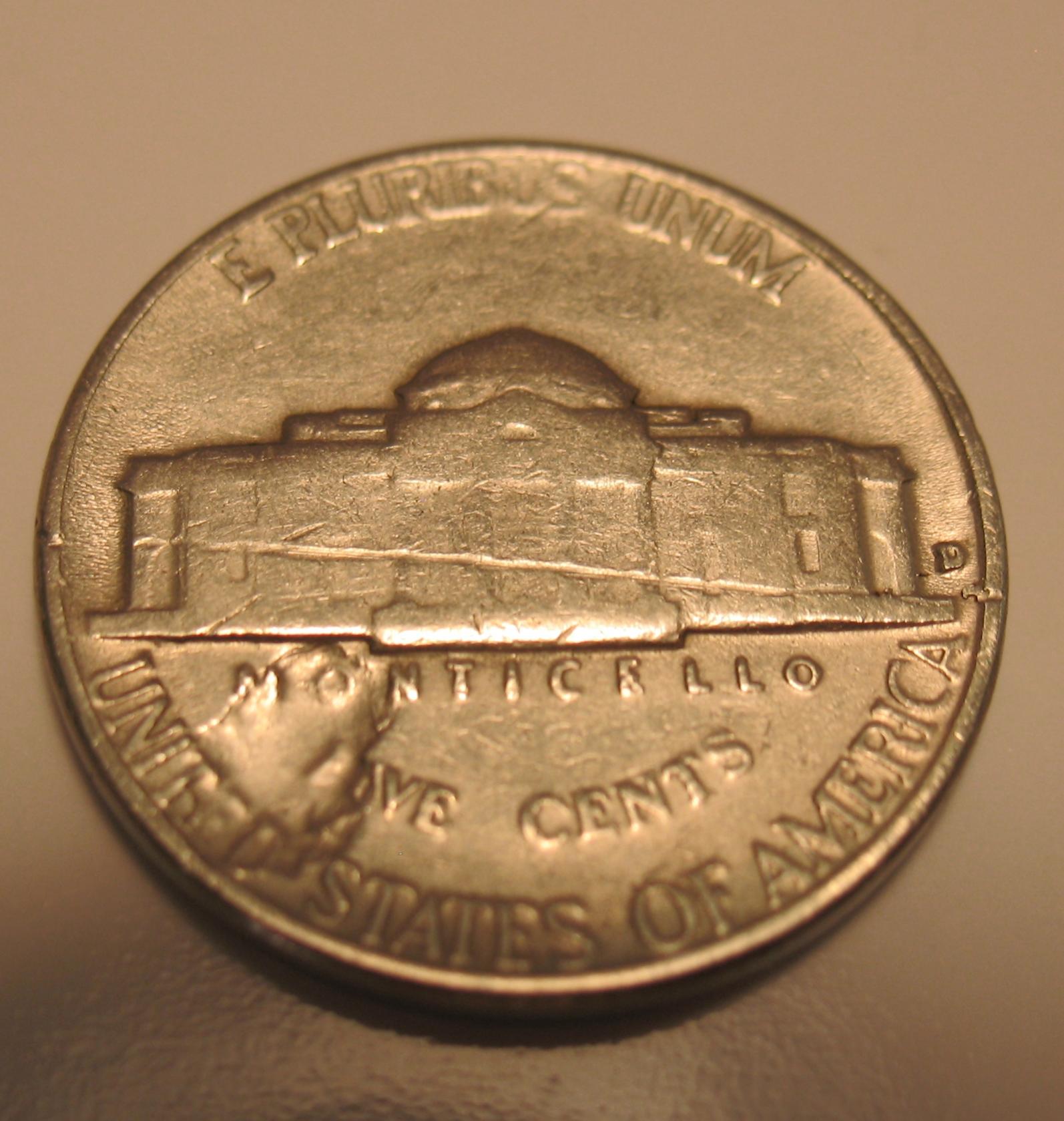 Hello, everyone. I found this nickel in my cash drawer at work, i'll explain each error i found. On the reverse is the main object, there is a indent that doesnt appear to have been made by anything rough like a stone, so I thought it might be a Die Error like a Grease Error. Second thing is that all the text is rough, badly struck and some of the text on the reverse appears faint, but not like its been worn away, also resembles a grease error, atleast what iv seen when searching examples. Third thing is a mark that almost crossed the whole back, straight through Monticello, it might be ordinary damage but its clean, no edges like a scrape or cut might make. Ill upload pics so everyone can see, hope they are good enough, its hard to take quality pics.