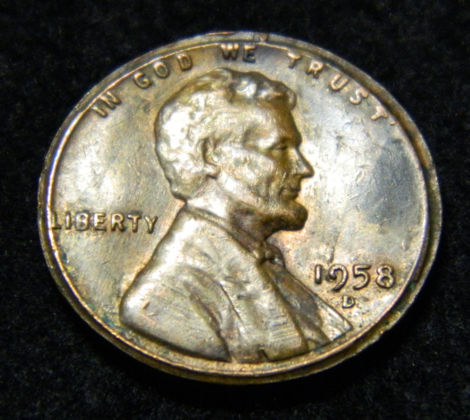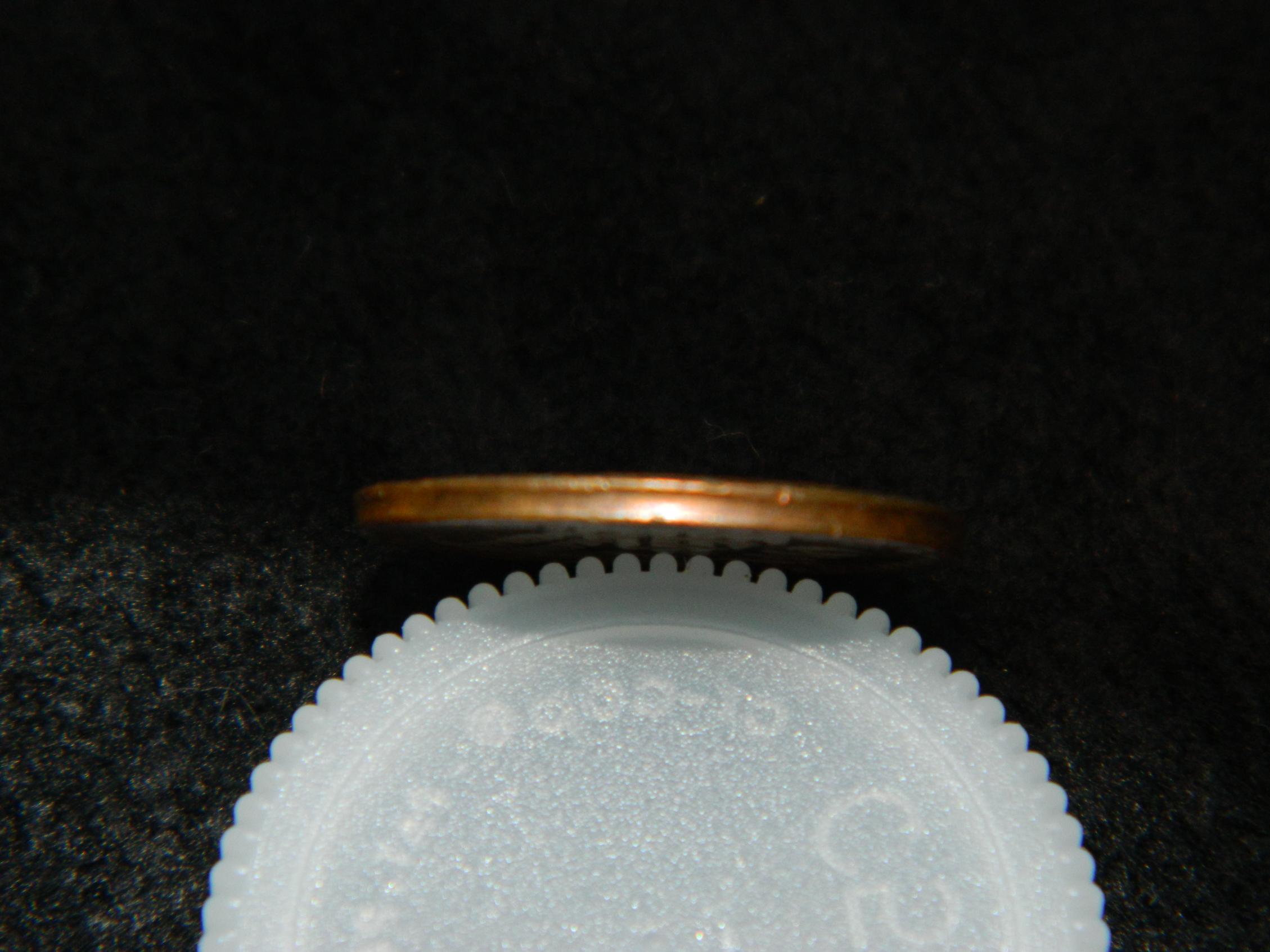 Diameter is slightly smaller than normal, weighs 3.08 grams, obverse fields are domed (kinda looks like high relief), reverse fields are wavy (high on the right, low on the left) , true railroad edge. Found in roll years ago.