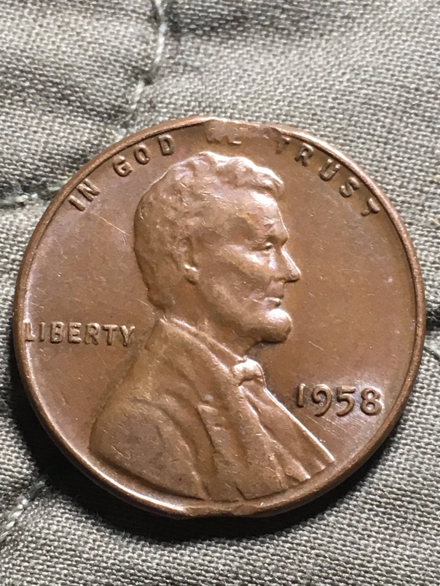 60 year old penny probably used as a screwdriver tip. Many ppl use coins for alternative things. I used to use coins as a buffer while hammering stuff. It was far cheaper than the blanks I used which we’re then Tossed afterwards. With coins even when damaged they are still worth face value.