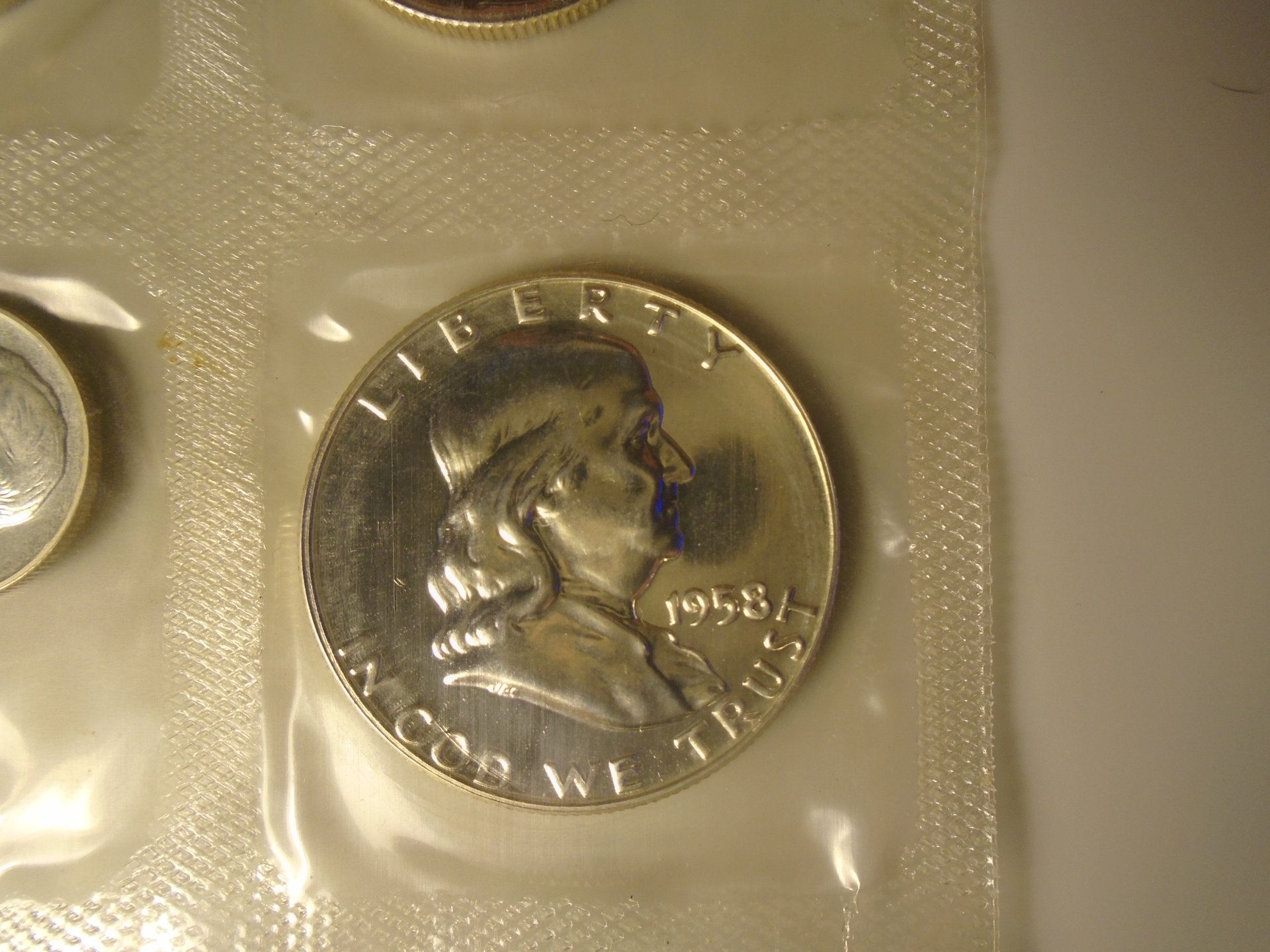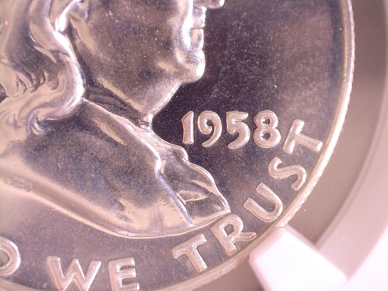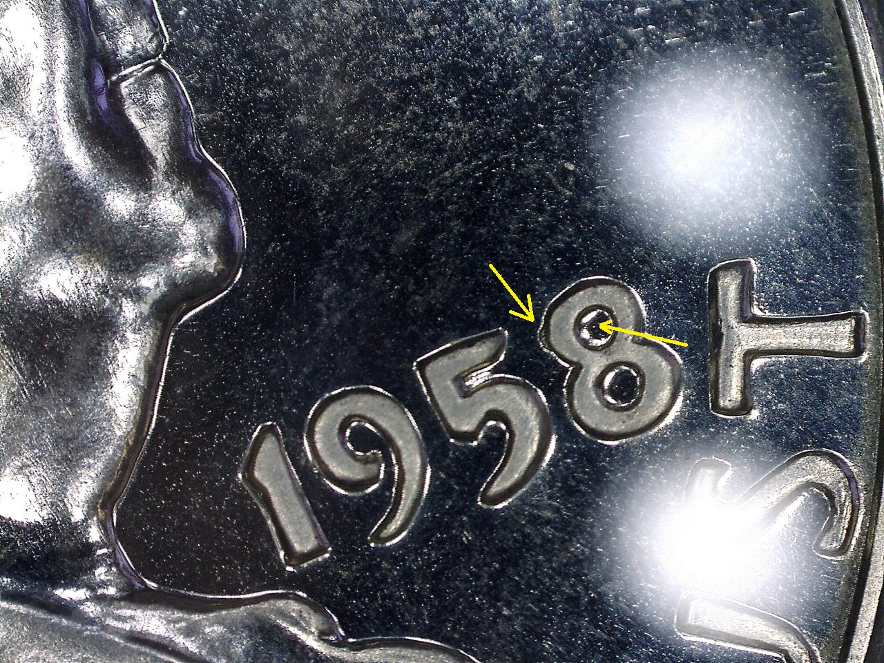 Has anyone seen anything like this? Found in 1958 proof set. Please notice the "8" in the date, there's something inside the upper loop that protrudes out left side?? Also the "5" has a shelf on the right side. Any input would be appreciated. Thanks
