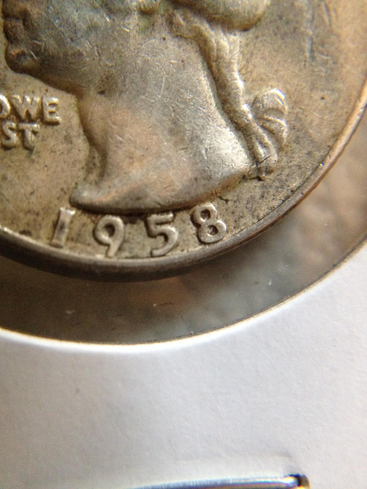 Hi everyone: I need your help with my 1958D Washington Quarter. It appears that the 5 is punched over a 7 ??? and possibly the 8 punched over a 9 or 2 ??? Please look at my pictures I posted and help me. The close up pictures of the 5 and 8 is through a 60-100x magnifying loupe that I attached to my iphone. Any information would be very appreciated. Thank you so much. SC