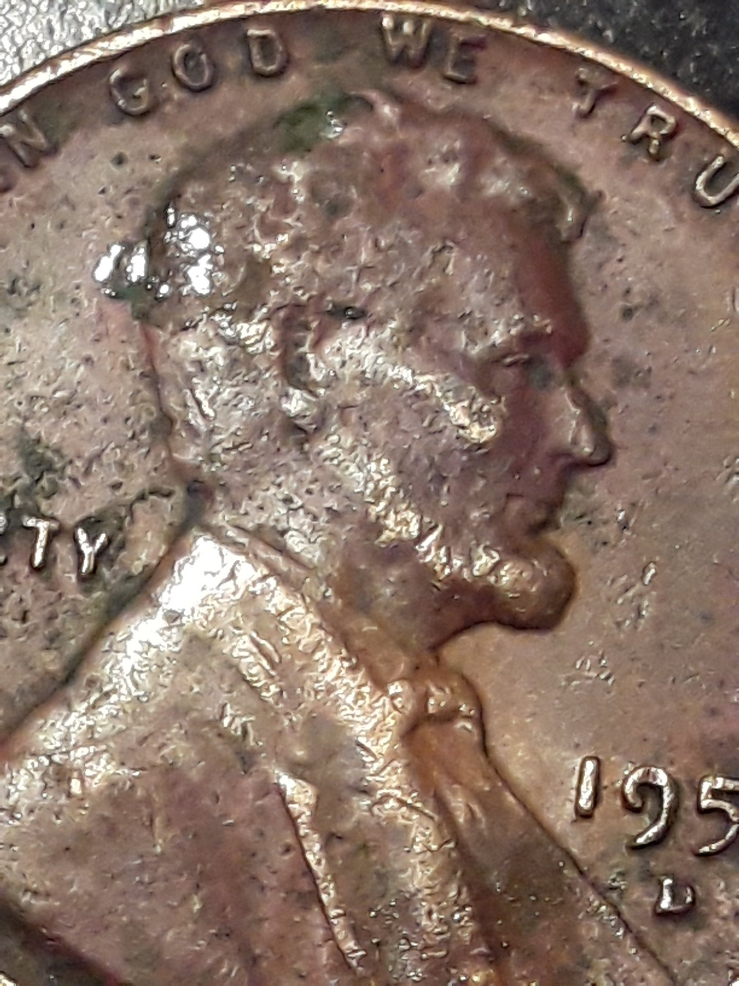i think it some type of strike over or a dime in there look at Lincolns head without thinking damage look at the texture of the head seems like another head with silver hair