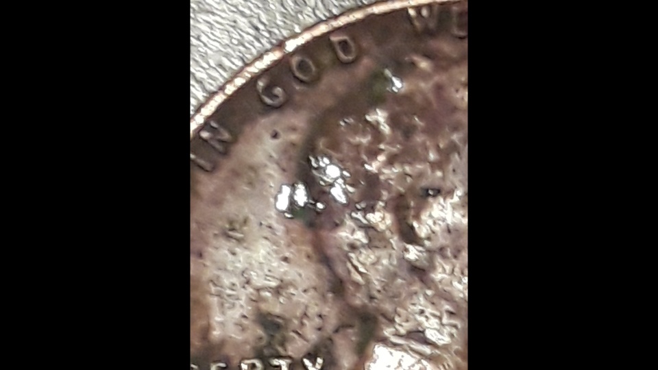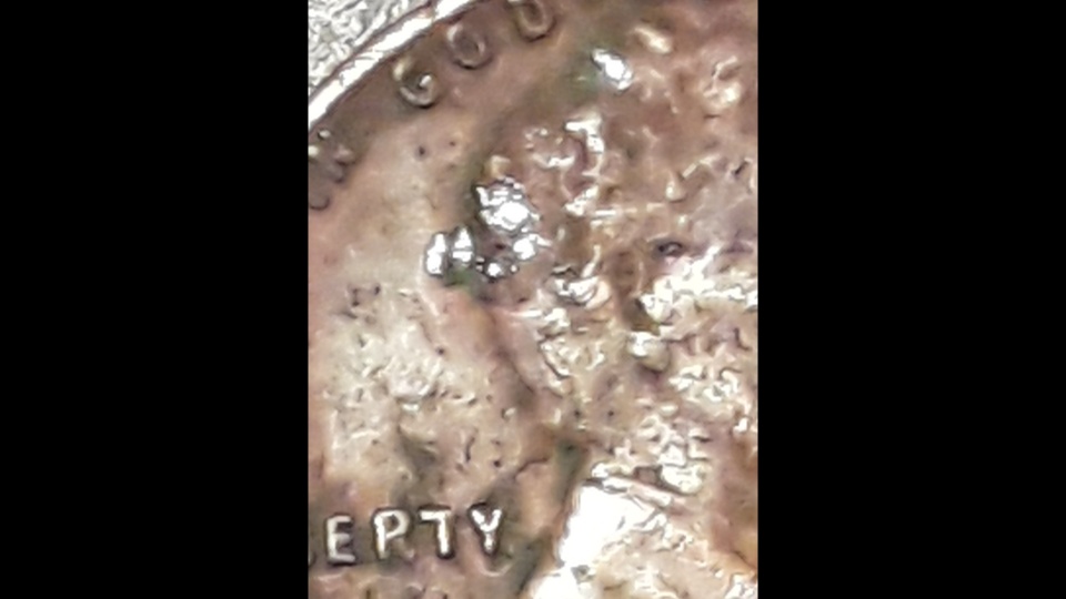 Hi Thank You the coin have silver chips from mint it seems not after mint and Lincoln's head is showing that just my opinion the silver is ingrained in the coin if you look good at Lincolns head you see the texture seems like a head growing out of the back of Lincolns head and it is silver