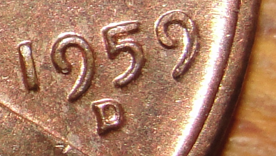 Is this what you mean lonegun? http://www.coppercoins.com/lincoln/diestate.php?date=1959&die_id=1959d1dr001&die_state=mds Here's a shot of lincoln on the coin in question, followed by a comparison shot of the designer's initials and the whole rev. of another 59D cent: