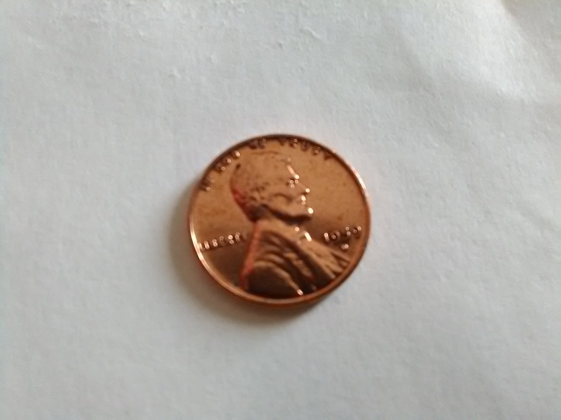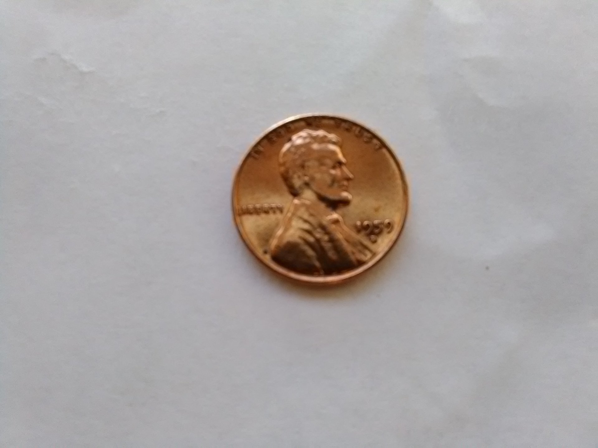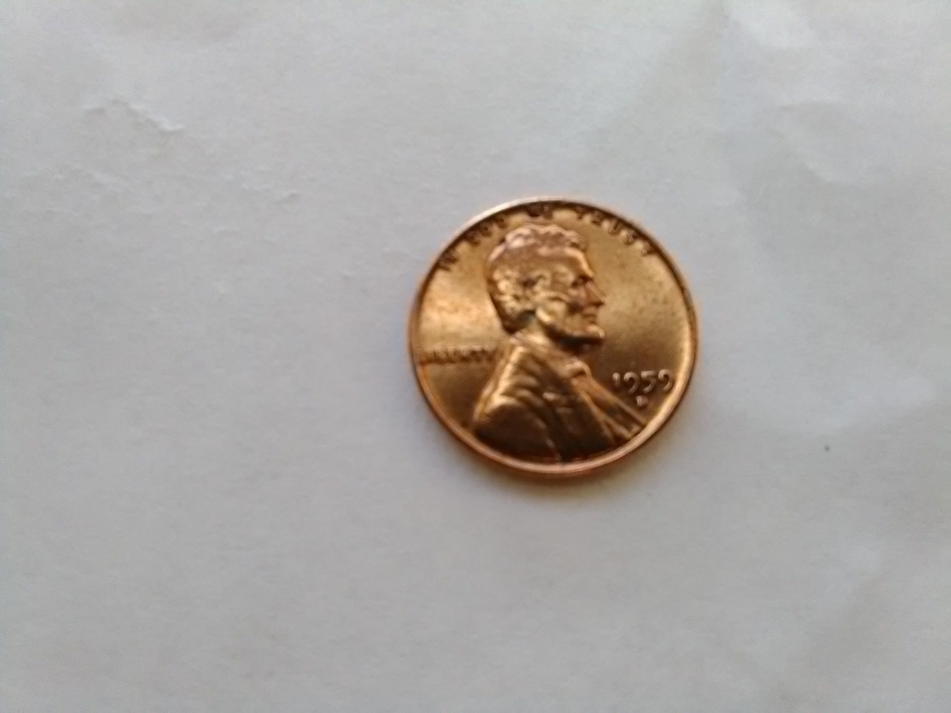 Really can't tell, those are terrible photos - they aren't in focus. However, it's not uncommon for a cent to have been glued to a mailer for a variety of reasons... postage was 4c in 1959, so "Here are 4 cents to cover the cost of mailing us your contribution".