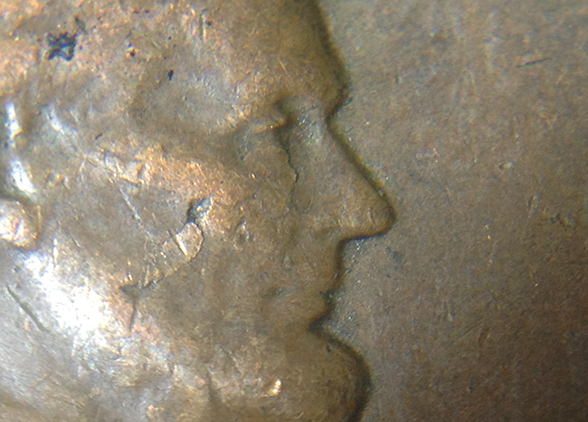 I was wondering is the L in liberty along with parts of IN GOD WE TRUST doubled die? Lincolns face also seems to have some sort of crack along the cheek bone and on the jaw what is that?