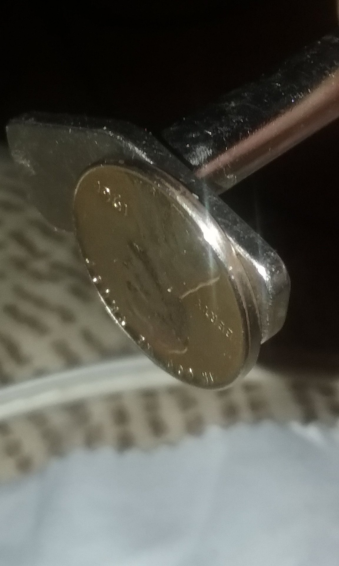 Where did you find that and is that on a magnet? I dont believe the surface was altered because the devices of the memorial and Lincoln are clean and sharp.