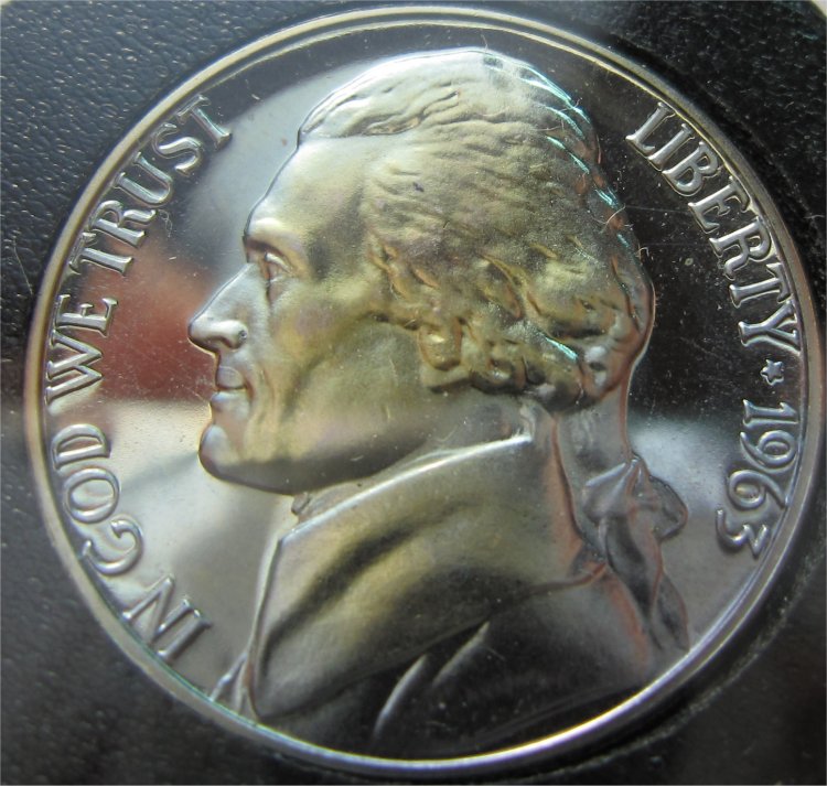 I'm curious... I've seen this distinctive yellowish toning/coloring on Jeffersons before... would you and anyone else interested mind entertaining a thought I had? I've heard that in the minting process of Jeffersons, the planchets undergo several rounds of chemical baths and rinsing. I distinctly remember (I could be wrong) reading somewhere that these planchets, having gone through a specific mixture, return from the batch with a yellowish-tinge. It is my understanding that this tinge is later cleaned through a rinse later in the process, but could it be possible that some nickels get through unwashed, and are struck on these yellowish planchets? I know it sounds far-fetched, and judging by the localization of the toning on your specimen, I doubt this piece (or any others with this toning) could truly arise from such an oversight, but I have to say the premise seems relatively plausible? If anyone can give me some information on how this could not be so, I'd appreciate some direction. Sorry if this is off-topic; that is a pretty neat coin you have there, no doubt!