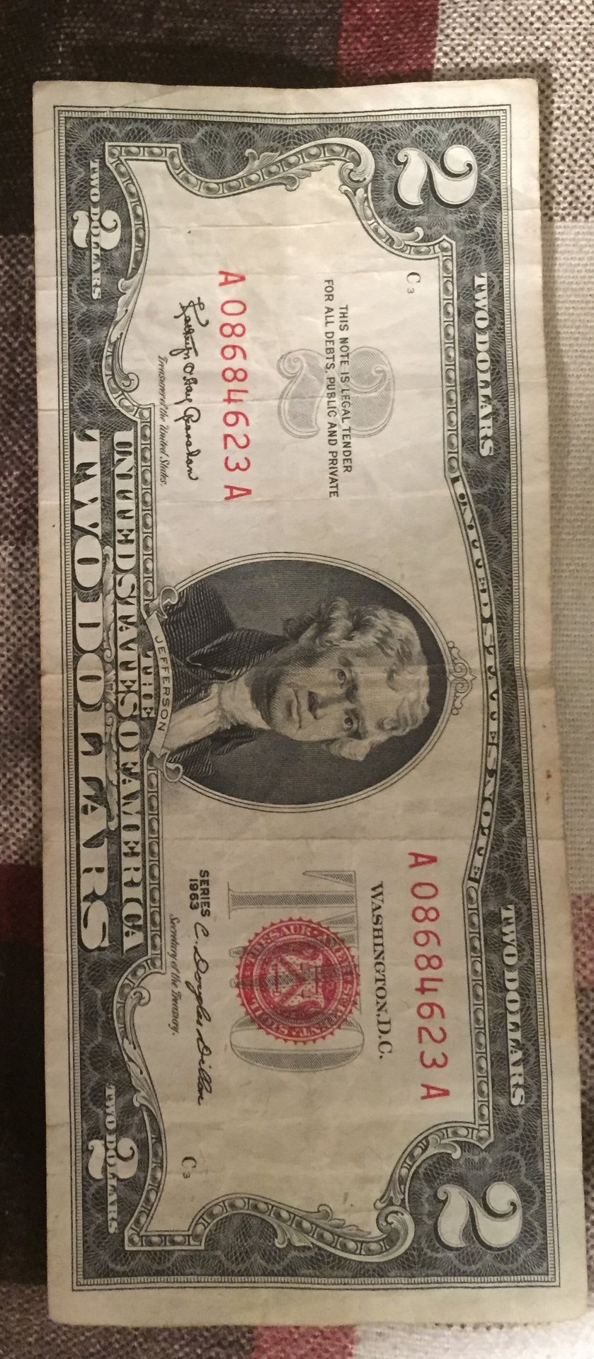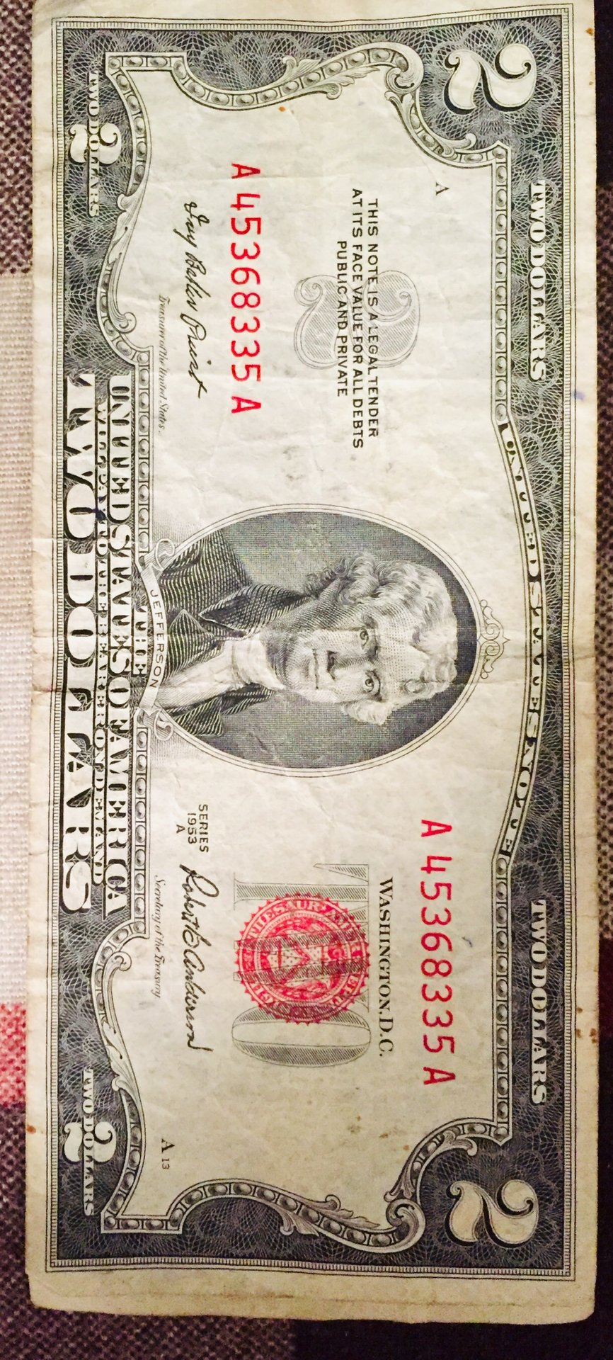 This bill has creases that look like they were there when printed and not from folding. I also have a 1953 one that is shorter than this one.