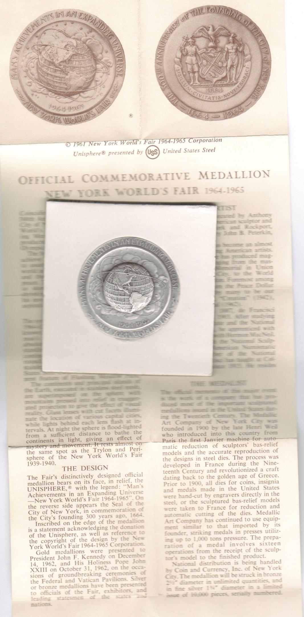 This is an original silver medal, in blue cardboard box with paperwork, total 10,000 minted; this is #2028. Weighs out on my scale at 65 grams, so with 31.103 grams per Troy ounce, and allowing for rounding error, I figure this medal contains TWO TROY OUNCES of .999 silver. The edge reads in part, "Medallic Art Co., N.Y. - .999+ pure silver". Price, $75 postpaid and insured. USPS or convenience-store money order only, no PayPal on this item. Shipped ONLY to the continental (48 states) United States. One sold this week on eBay for $79.95 + postage.