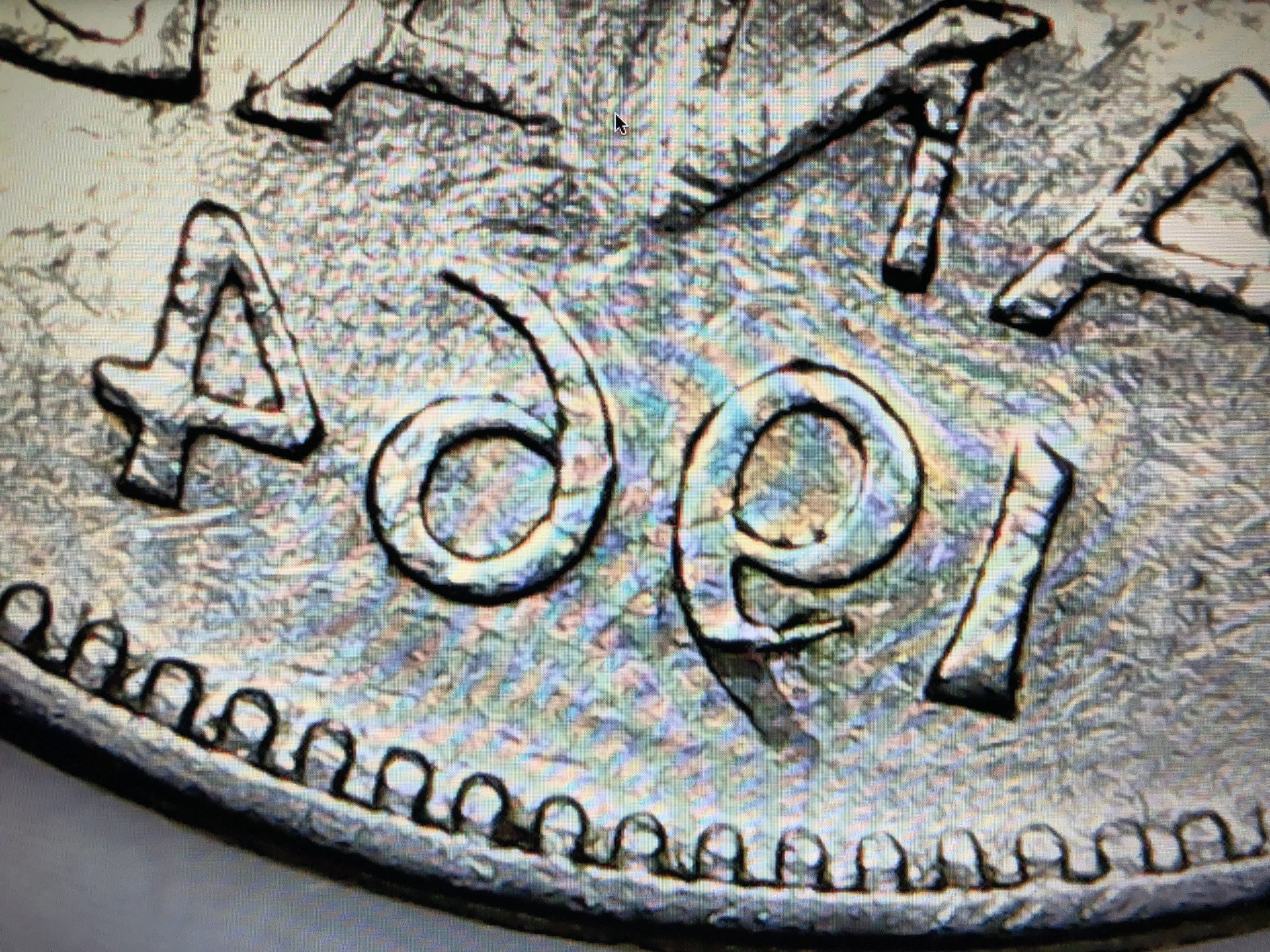 Hey everybody. I do believe this is an error on the date. Also, it’s hard to see in the picture but there appears to be some sort of faint, lettering underneath the date? Does anyone else see it? Edging of the coin seems odd as well. I don’t know much about Canadian money. (Sorry for the inverted picture, I’m not sure how to fix this issue)