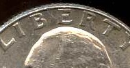 I was looking at some quarters last night and this one caught my eye. There was a line running across the top of Washington's head that wasn't part of the design. At first, I thought it was a scratch, but when I looked at it with a 14X loupe, I could see that the line was raised, not incuse, so it seems to be a die crack error. Although you can't see the entire length with these scans, the line is very noticeable under the E and R. I call it my "cracked skull" quarter.