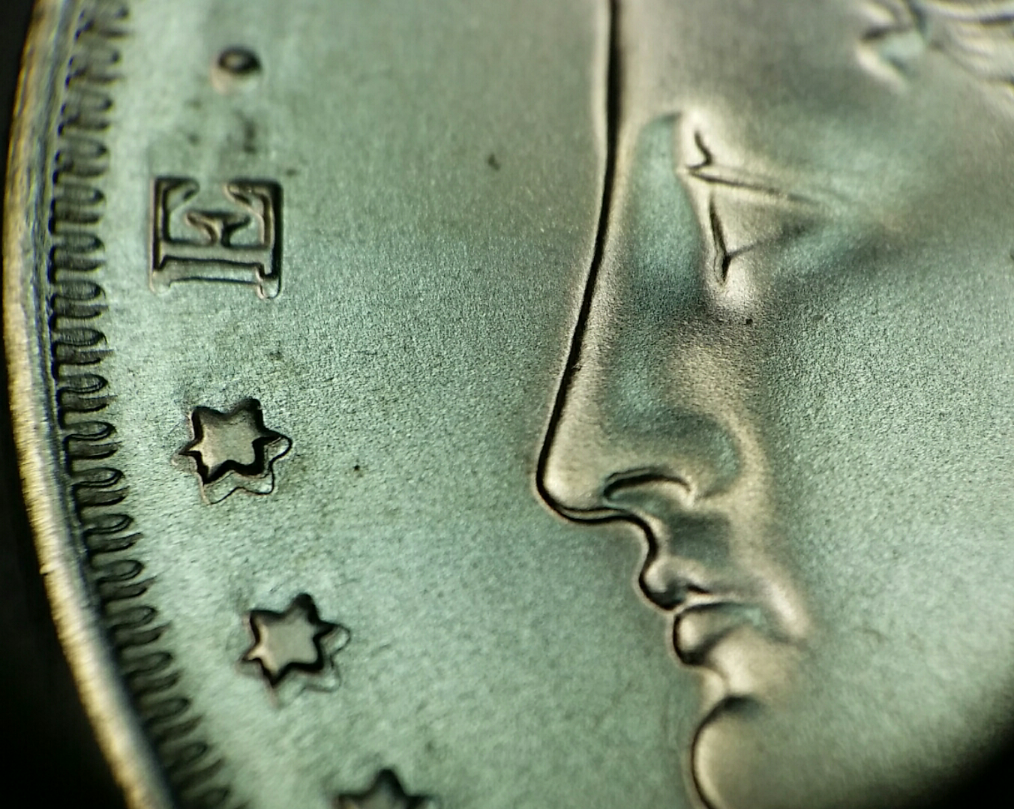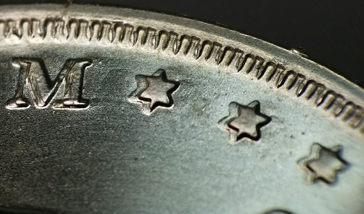 Finally got around to getting pics of mine. Does any one else's show split denticles? Mine does on the reverse. Also have some sort of a rim defect shown in the picture below.