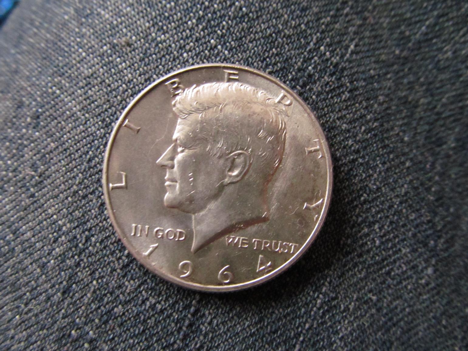 1964 kennedy ddo/ddr i found a '67 D DDR earlier, and now i just found a '64 P DDO. doubling to WE TRUST, and the Y in LIBERTY. uncirculated, but it has some ugly toning. i swear, sometimes a light dip will improve a coin instead of wrecking it.