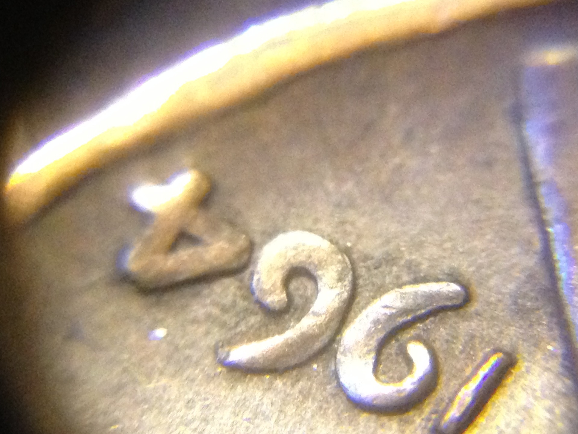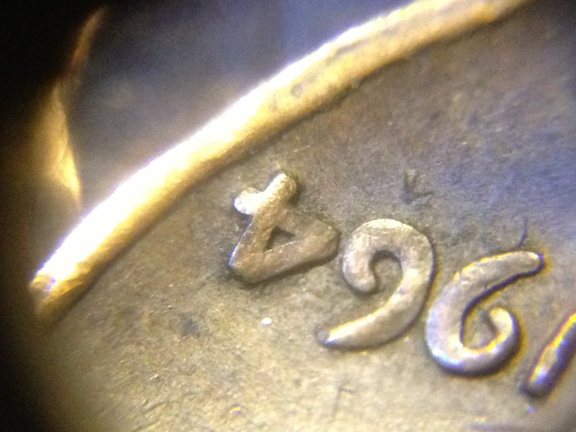 the numbers are rounded and Why isnt the 1 flattened? Its just my opinion but I find it hard to believe that 964 is circulation damage. its just too wide of a spread and too thick and also look at TRUST and IN, and look at the R in LIBERTY not to mention how smooth the surface is on 964 I think if it where circulation damage It would be alot more beat up.