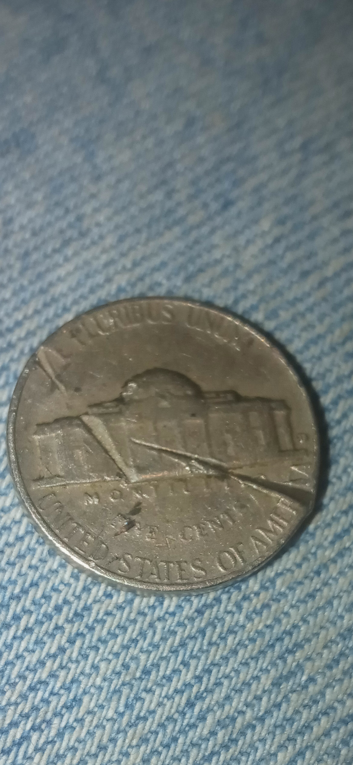 In an attempt to educate; @Todd bordon - If you look at the cuts, you can see how the metal has moved after the coin was struck. It's most noticeable on the reverse, as the lines of Monticello are distorted where the 'cuts' are. Typically, the first thing to look for in an error of the type that you though this was, is to see if there is any raised metal around the anomaly. If there is, move on to the next coin, 'cuz raised metal is 99.9999999% PMD (post-mint damage). No raised metal? Check for distortion of the finer details of the coin. Distortion is there? Move on. Now try and think of how/why/what caused the anomaly of the coin you're looking at. Try and think of something in the world outside of the mint that could have caused it. If there is anything at all you can think of that caused the irregularity, then you're most likely correct, and it didn't happen at the mint, therefore not an error. In the case of this coin, someone was bored and had a nickel and some snips, and entertained themselves. There are literally billions of coins with all sorts of anomalies. And with the utmost certainty, I will say that all but a very few, and I mean like 0.0000001% are nothing more then PMD. Knowing these tidbits of info, along with more that you pick up along the way, will make the hunt that much faster, and save yourself the adrenaline rush over nothing. Don't stop searching, but be aware of the clues you're looking for... and Welcome to CoinTalk!