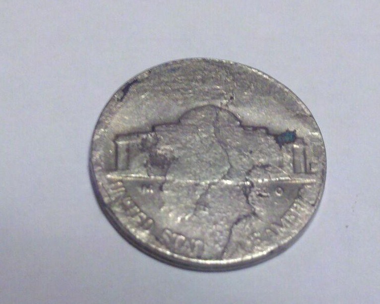I found a nickel today in my grandmother's collection (hasn't been touched in over 25 years) The nickel is a little bigger and thinner than other nickels. The Monticello was stamped over Jefferson. The monticello is on the back, but there is what looks like melted silver covering part of it. Looking for any info on this find. Thanks