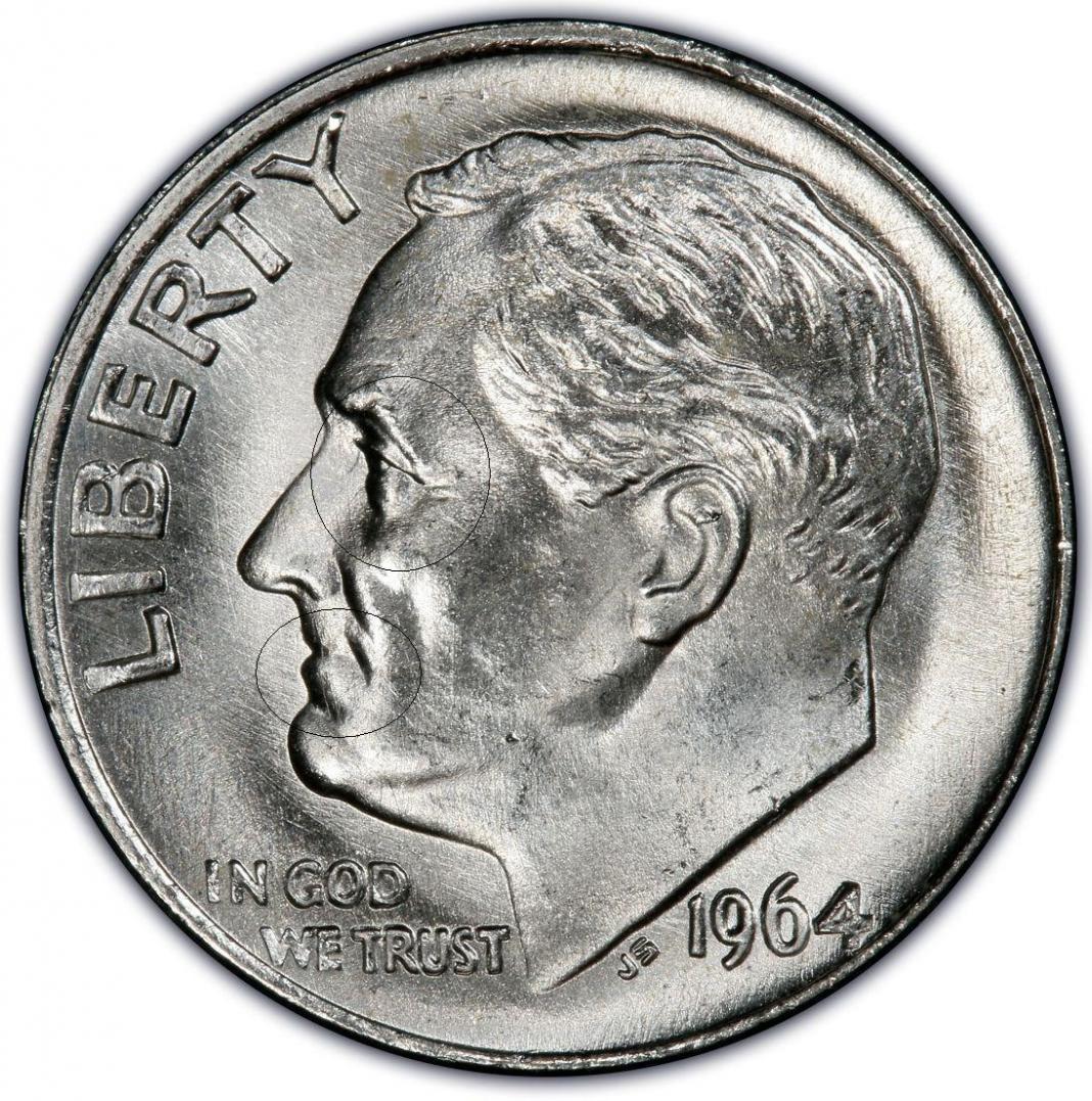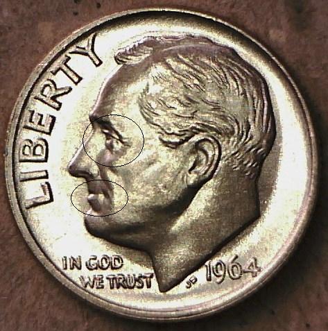 I've been studying theses three photos of Roosevelt Dimes ! I've Circled the Eye, and the Mouth of all three Coins ! The Eye and Mouth are different on the Special Mint Set, then the Regular Strike ! The first is a Photo from Pcgs, of a 1964 Special Mint Set Dime! The second is a Photo from Pcgs of a 1964 Regular Strike Dime ! The last Photo is the one I need help with, is it a Special Mint Set Dime, or Business Strike Dime ! Let me know, what you think ! Looks like a Special Mint Set to Me !
