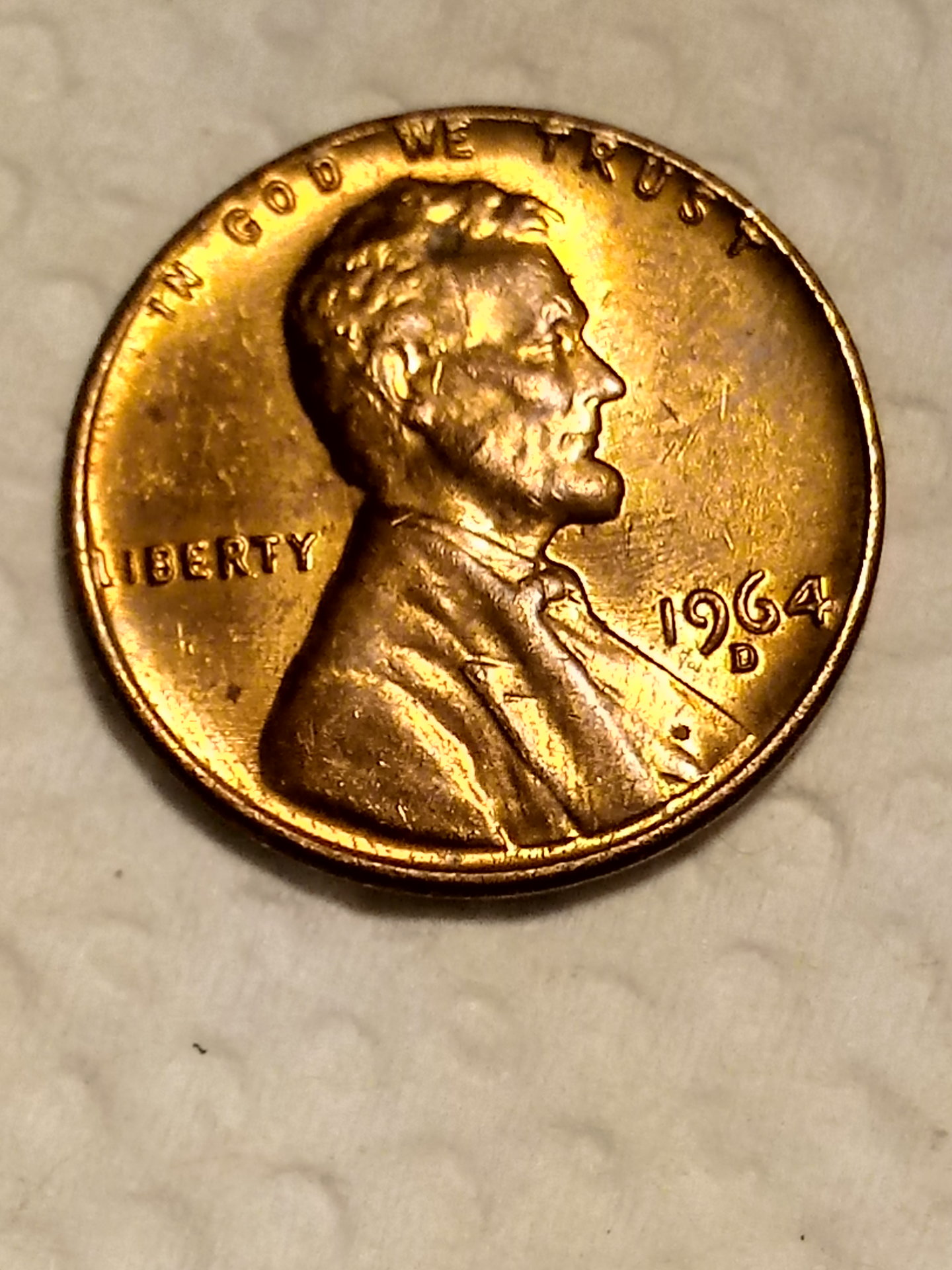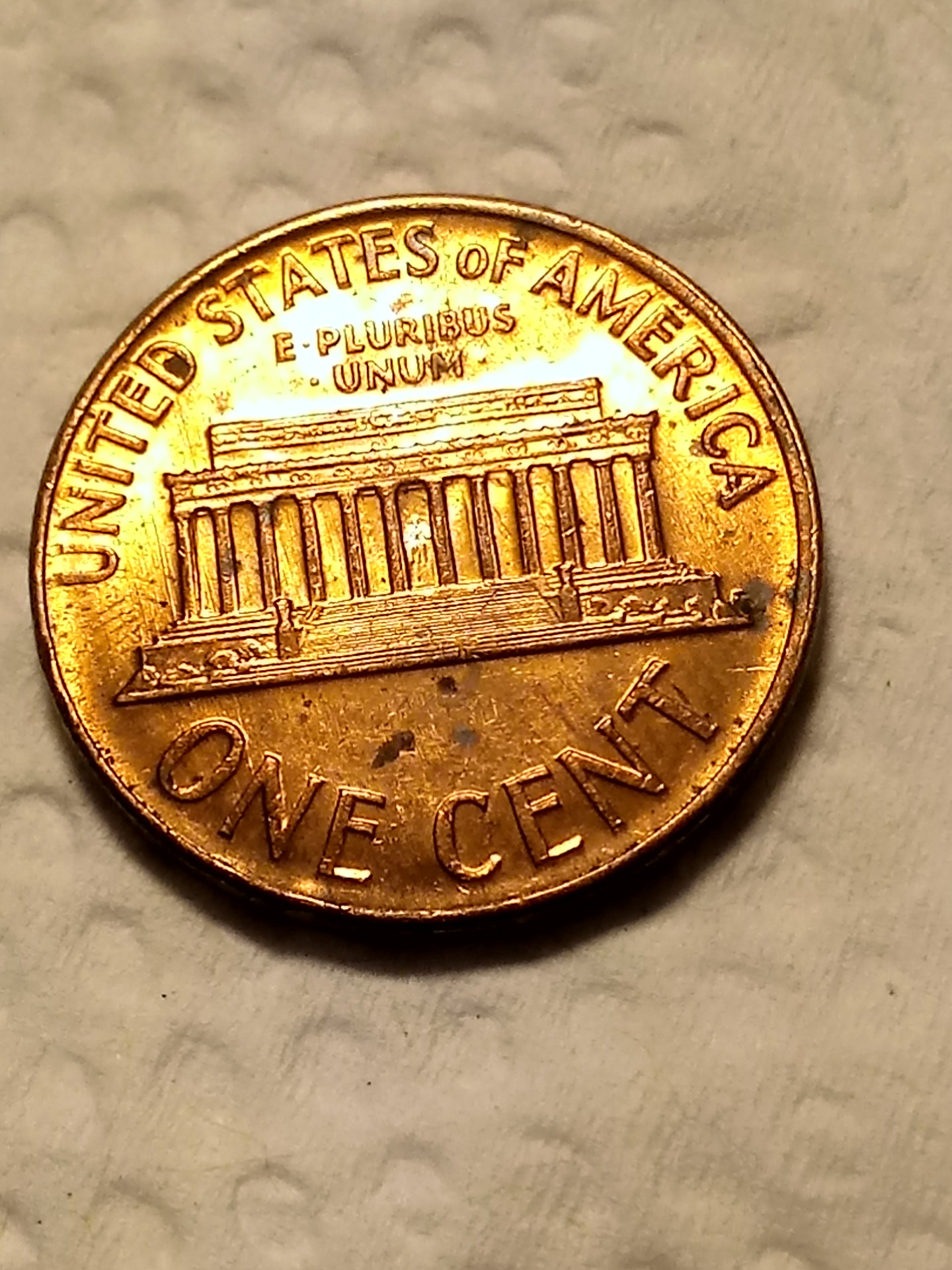 The funky color is called red, which is what new pennies look like fresh out of the mint. If it hasn't been cleaned or doctored in any way it is a keeper. It's not really worth anything because it is relatively modern and they made tons of them. But old red cents are worth keeping in a 2x2 coin flip.
