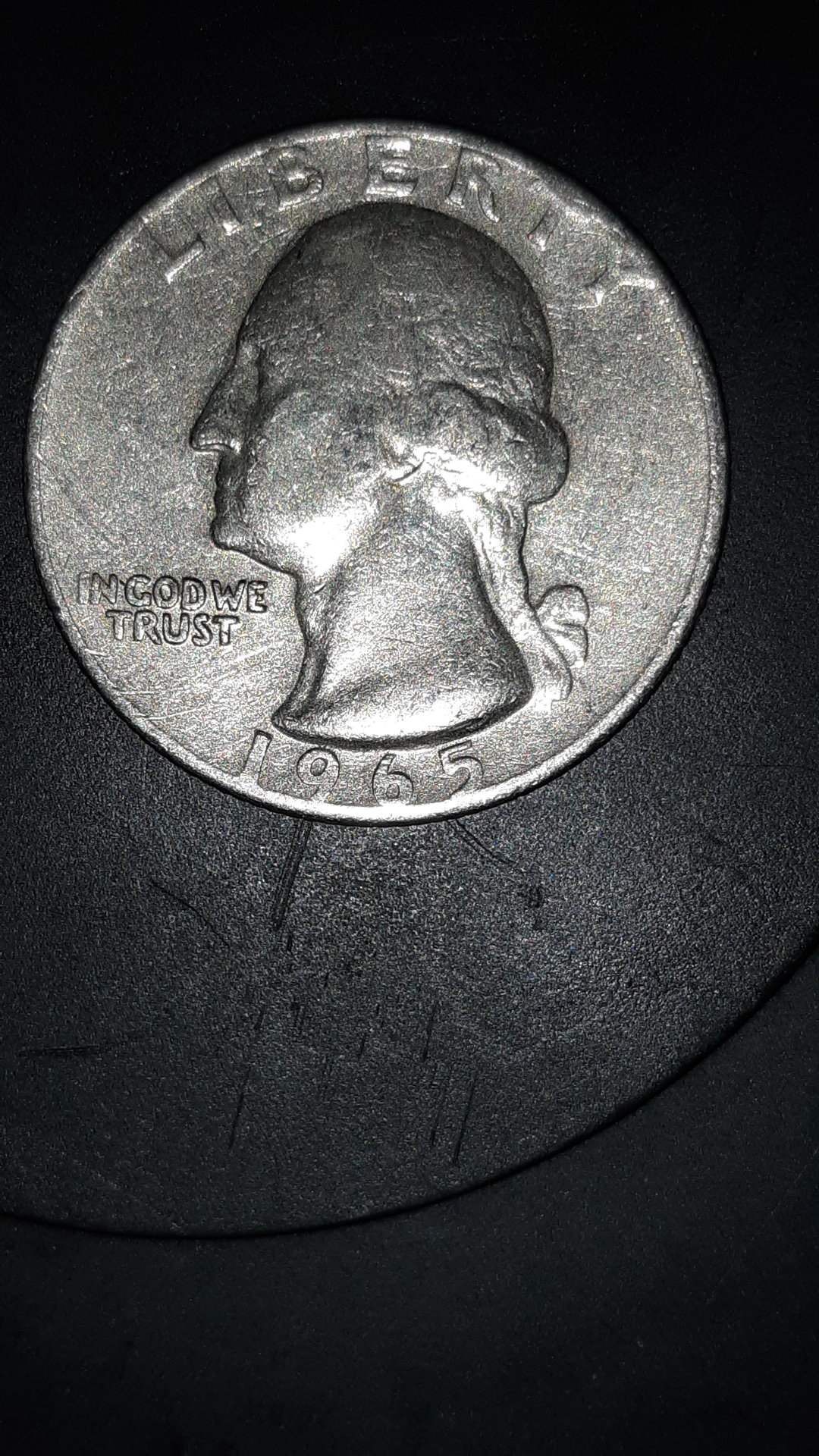 Yep, just damage, and for the record, there were no 1965 quarters with mintmarks, so that part goes without saying.
