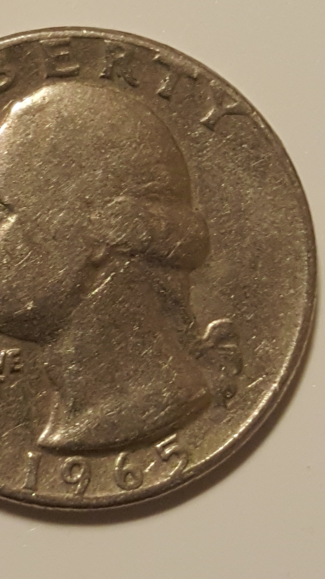 I would have jumped on the bandwagon as this being struck through grease or some other foreign matter but pictures can be deceiving. I have seen many that look similar to this but in hand under close inspection can reveal other things not in pictures. Some great possible explanations here but as one person said, possibly stuck in a machine is also a possible cause. Perhaps this is one that the OP should take to a dealer or show and get a better idea on this one and then get back to us. I certainly don't mind being wrong, I have been before.