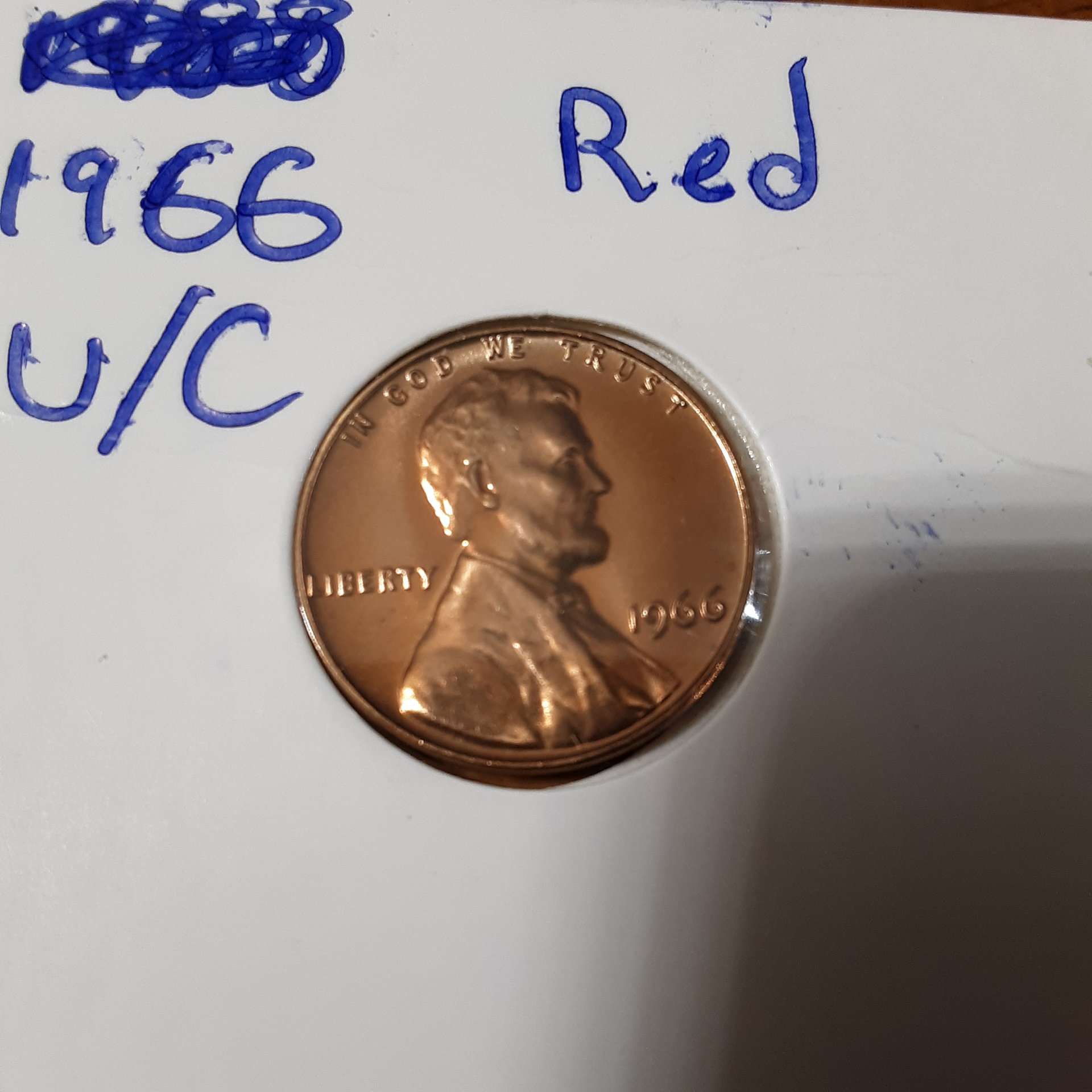 Something looks wrong. While it is very shiny and lustrous on the obverse, Lincoln looks very smooth with very little sharp details and lines. It's just like a lump in the center. Here is just a regular 1966 I took out of circulation for comparison. Where are the strong details in the hair, beard, profile and jacket on the OP's coin? Not to mention the missing details on the reverse.