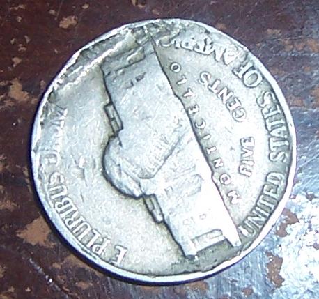 This coin looks like it has taken a lot of hits since it left the mint. It may have been found in a parking lot where cars had been running over it.