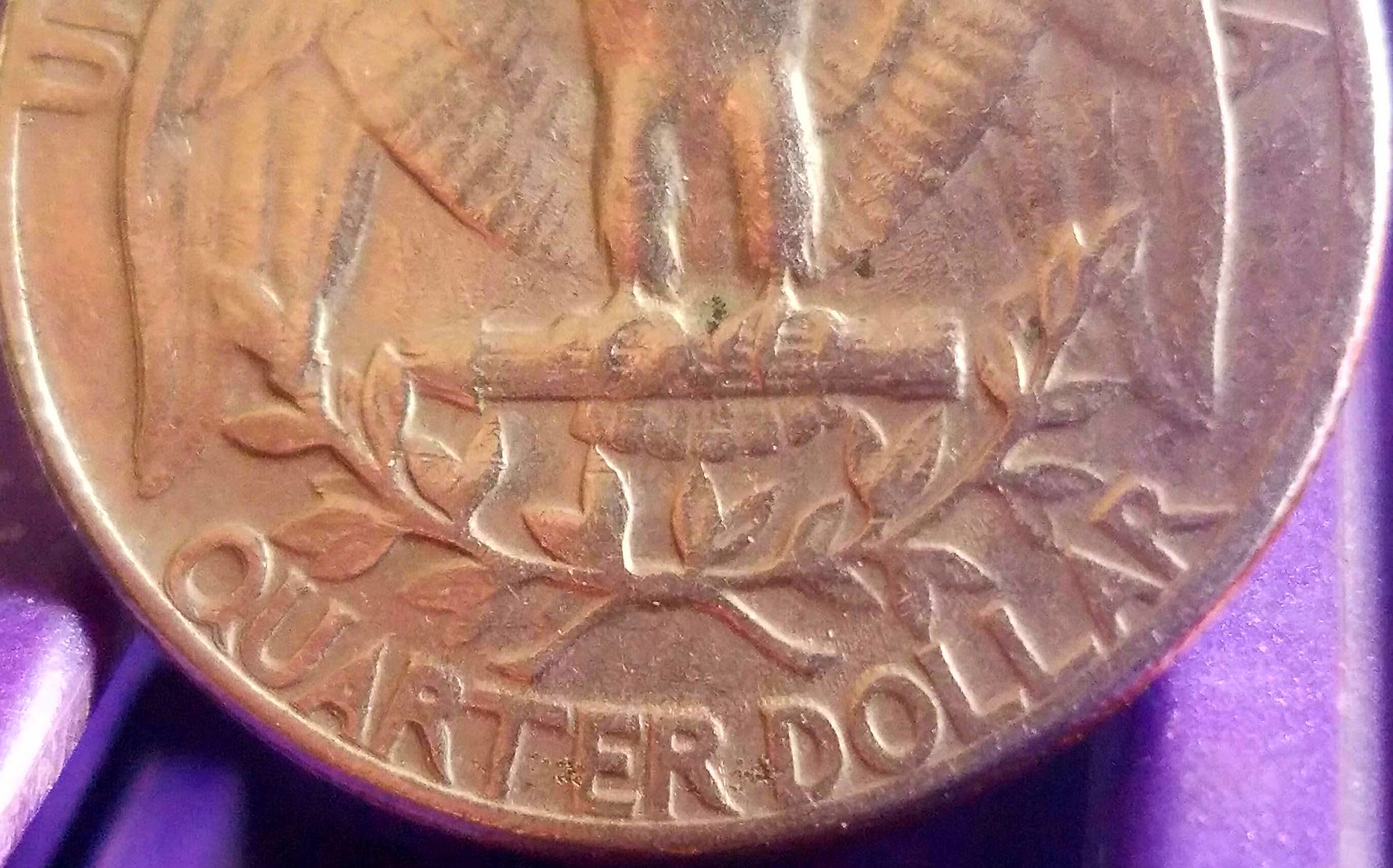 I just got this quarter back for change. To me looks like the quarter on bottom left its doubled and wing and some on top am i correct?