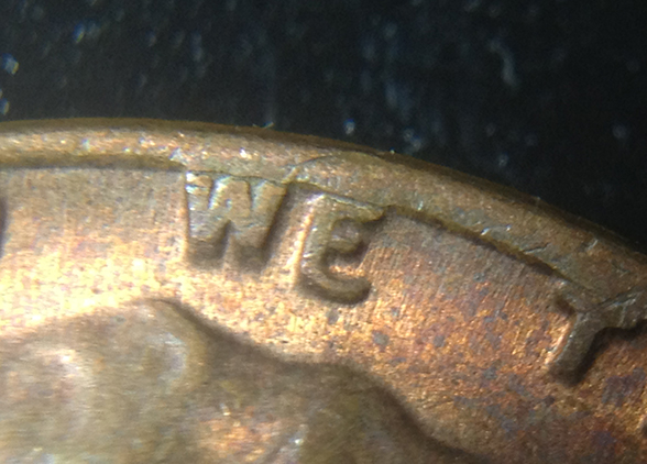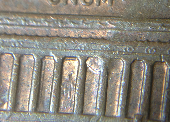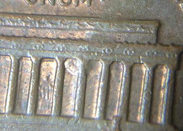 on the reverse side of this cent there appears to be a clash. the top of the column looks like a die break but but its an indentation that runs up to the right side of the building is this a clash? and is the obverse side of this a DD?