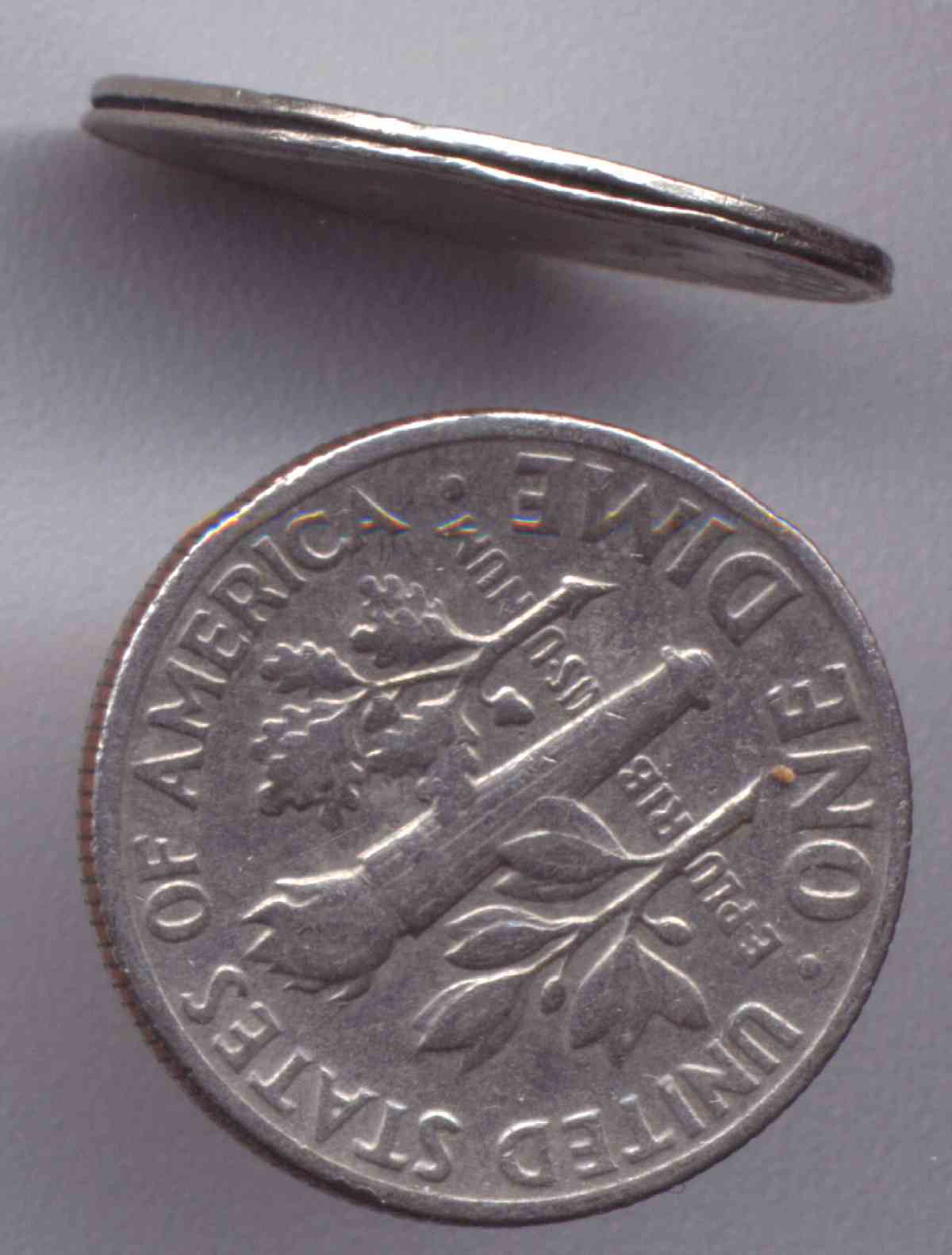 AppreciAte it conder101. Is there any rhyme or reason to the characteristics of a coin that's had an extended acid bath . I understand that the natural wear of A coin PRiOR to an acid bath would (seemingly) yield variations in weight n dimension. Why though, is there generally a synonymity with acid bath coins and "missing clad" coins. Assuming that the "after mAth" of these altered coins pertains greatly to the amount of time that the coin is in the acid, why ( in the case of my dime shown) is there no copper visible on either face of the coin. I understand that the copper portion of the coin is the first to "react" to the acid , thus depleting/ reducing the exposed copper core portion of the reeding, but my question is ....if this was an extensive acid bath, shouldn't at least a portion of the outer layer of copper nickel worn away, thus clearly exposing copper ? I'm certainly not disputing what you said ... I'm just trying to make sense of the process...thanks for your time