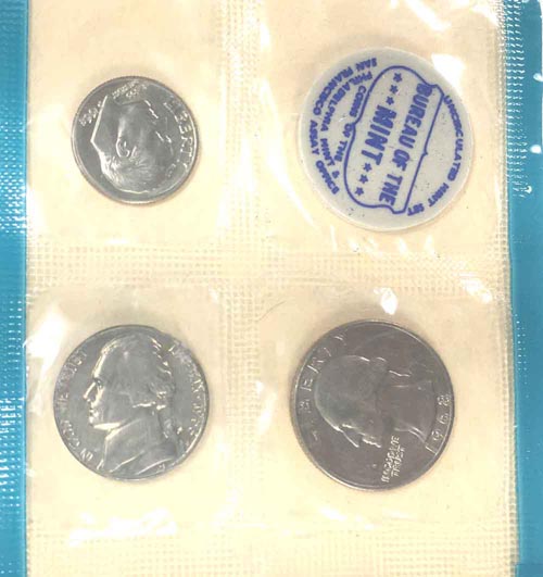 That is exactly the set I have in the same envelope. Does the nickel in the blue have an S? I was mistaken the quarter and the dime both in my set have no mint mark.
