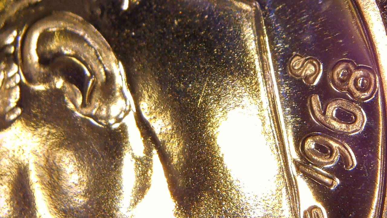 I know that the 1968 S Proof with no S is very valuable - I have also seen that there is a RPM S for that years proofs. I have two 1968 Proof sets my dad bought so I started looking at them. Mint set A discussed here seems to have "weird" S's on the dime, the penny, and the Kennedy Half dollar. On these three the top loop of the S is filled in like a cud or something and the bottom loop has a little nub connected at the top of the loop. I took the plastic cover off to get some shoots but it very hard to for me to get a good pic because of all of the reflections - will try some other lighting tomorrow. - anyway - if you can tell from the pics if there is a possibility of a RPMs Dime looks like an 002 variety, from what I have seen. Thanks Mike