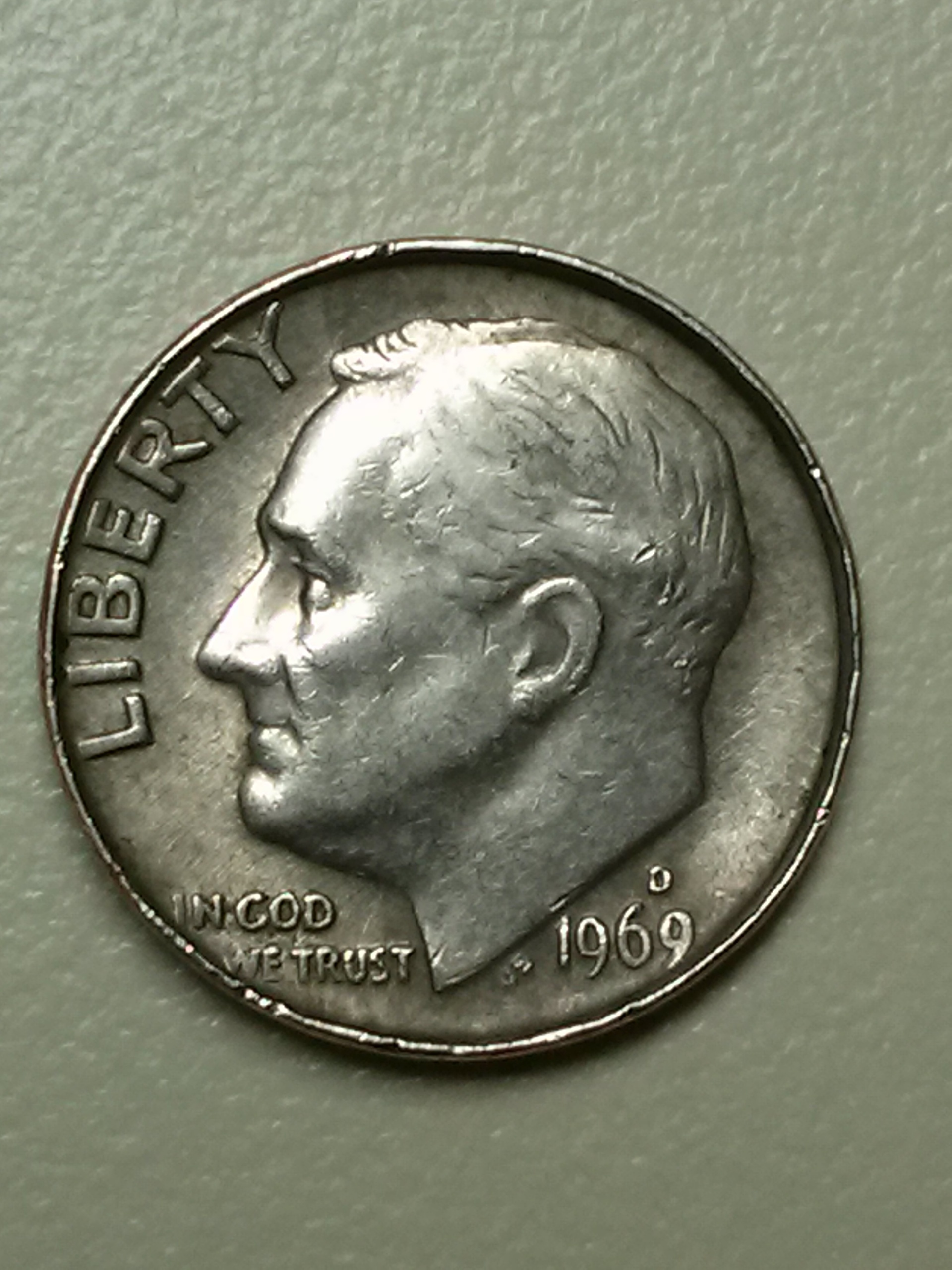 Hello, I have a 1969 D dime with very raised edges? What made it that way? Is it worth anything? In advance thank you for your help.