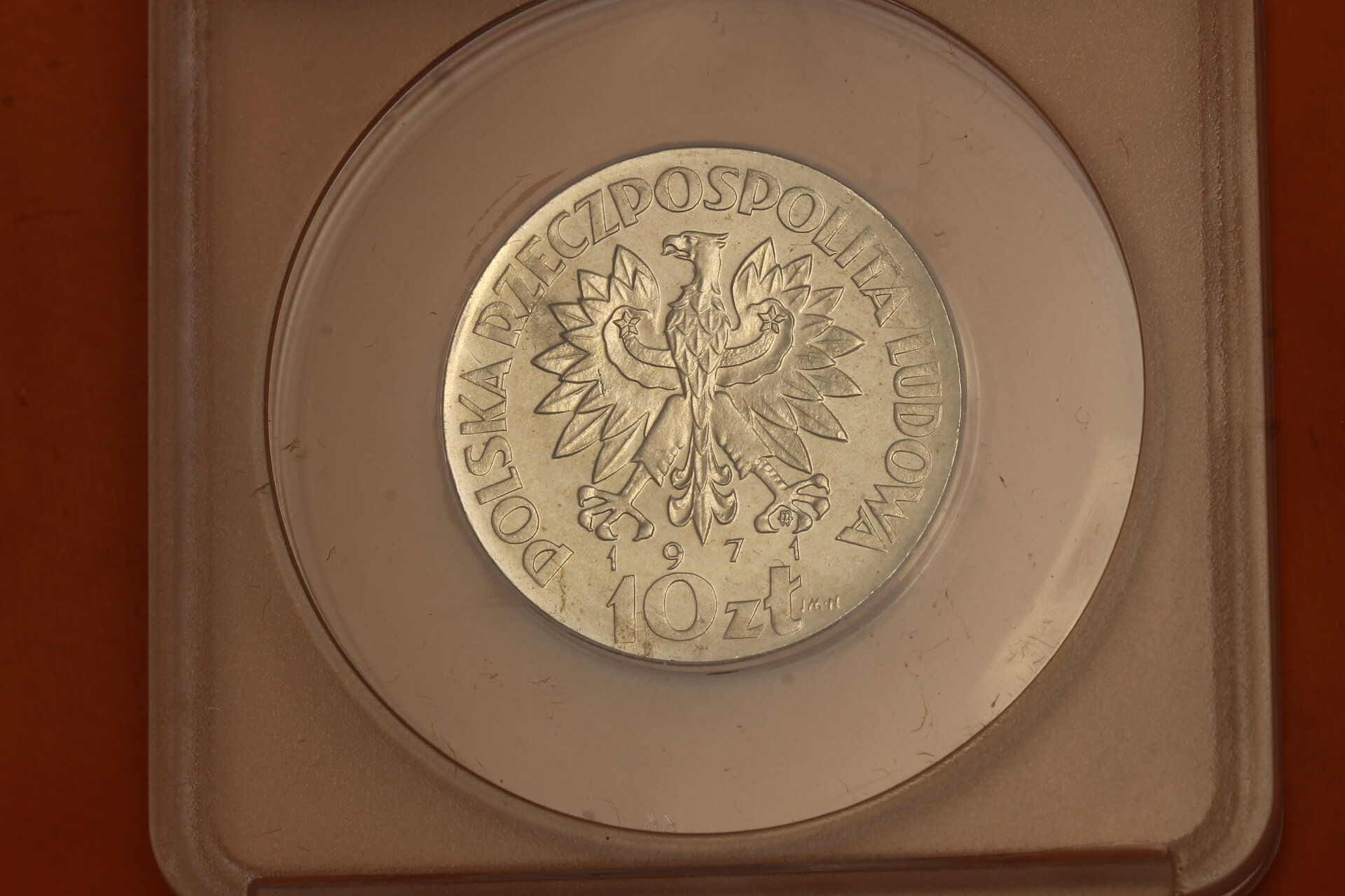 ANACS conserved - original condition http://images.mrbrklyn.com/coins/food_for_all_1972/10_zlotych_1971_poland_o.png?width=1024 http://images.mrbrklyn.com/coins/food_for_all_1972/10_zlotych_1971_poland_r.png?width=1024