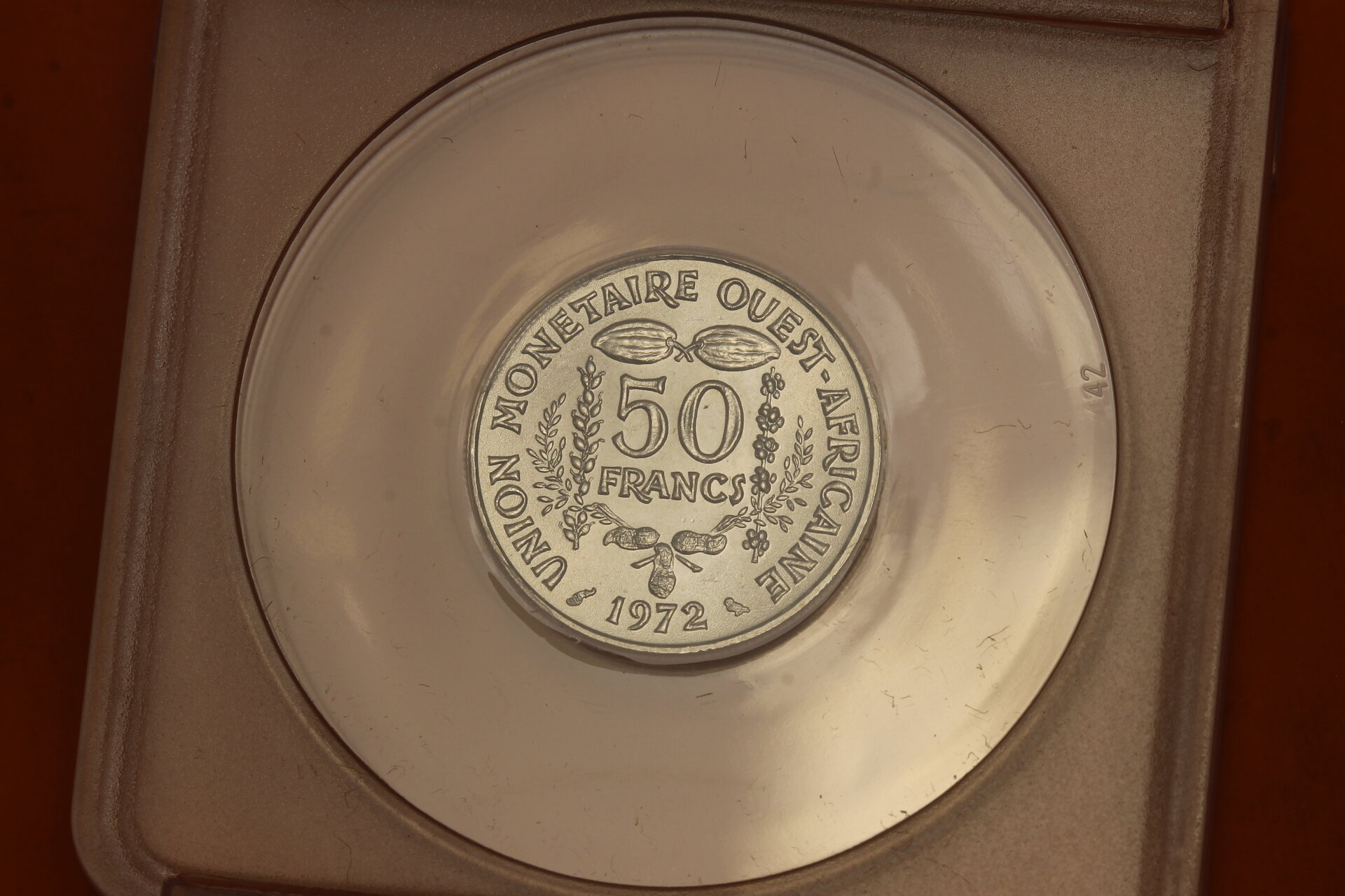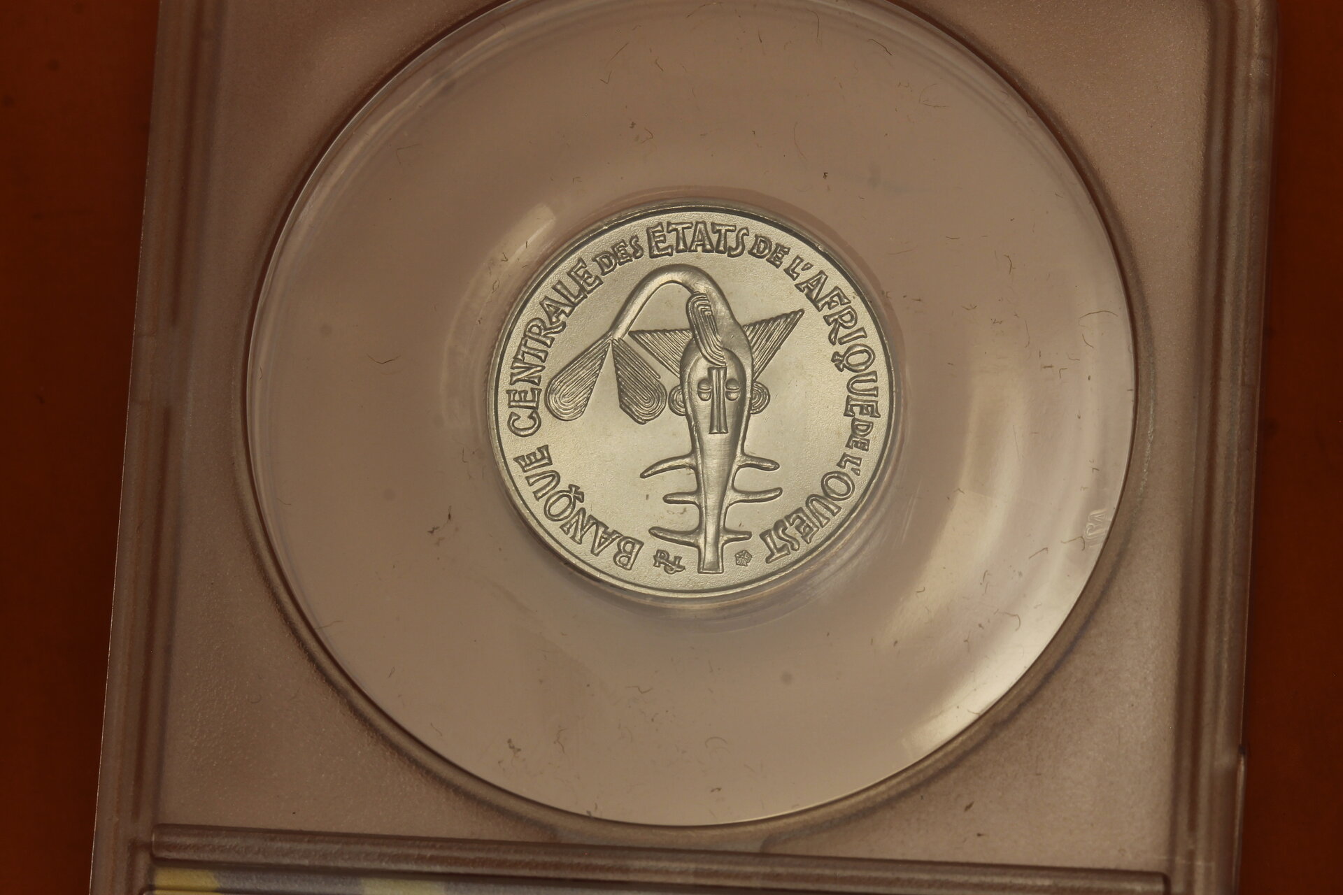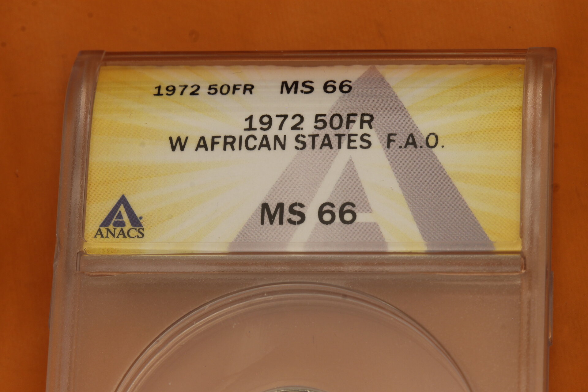 ANACS conserved Origianl State http://images.mrbrklyn.com/coins/fo...ancs_1972_West African_Union_o.png?width=1024 http://images.mrbrklyn.com/coins/fo...ancs_1972_West African_Union_r.png?width=1024 Substantial Color alteration