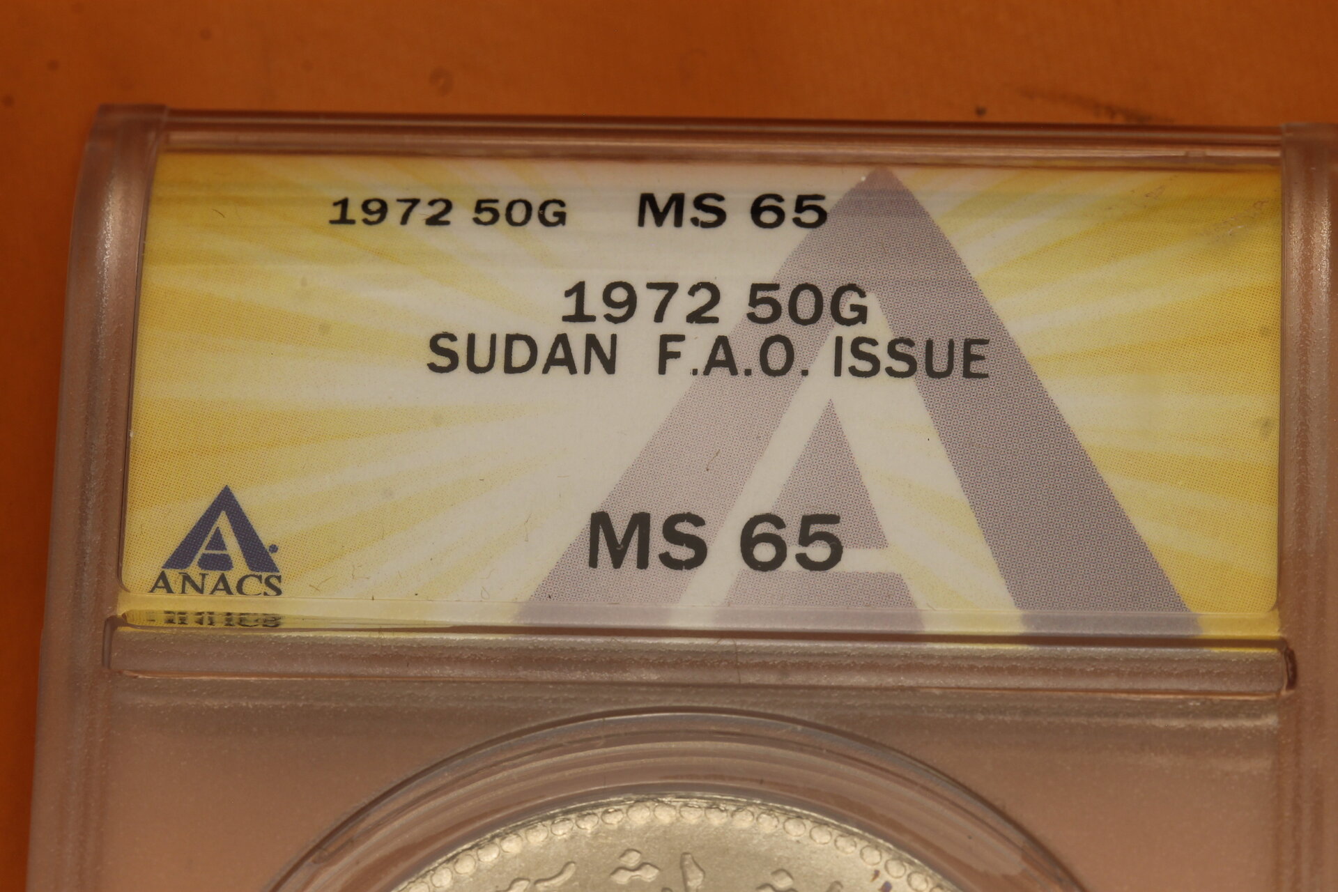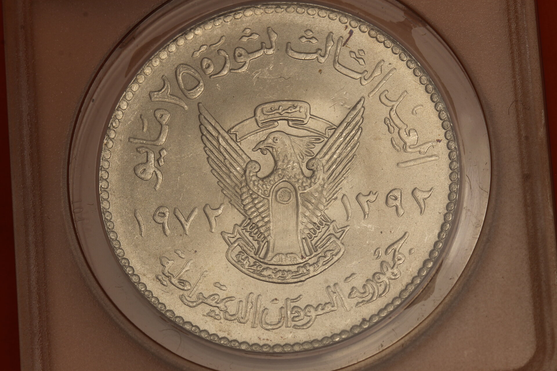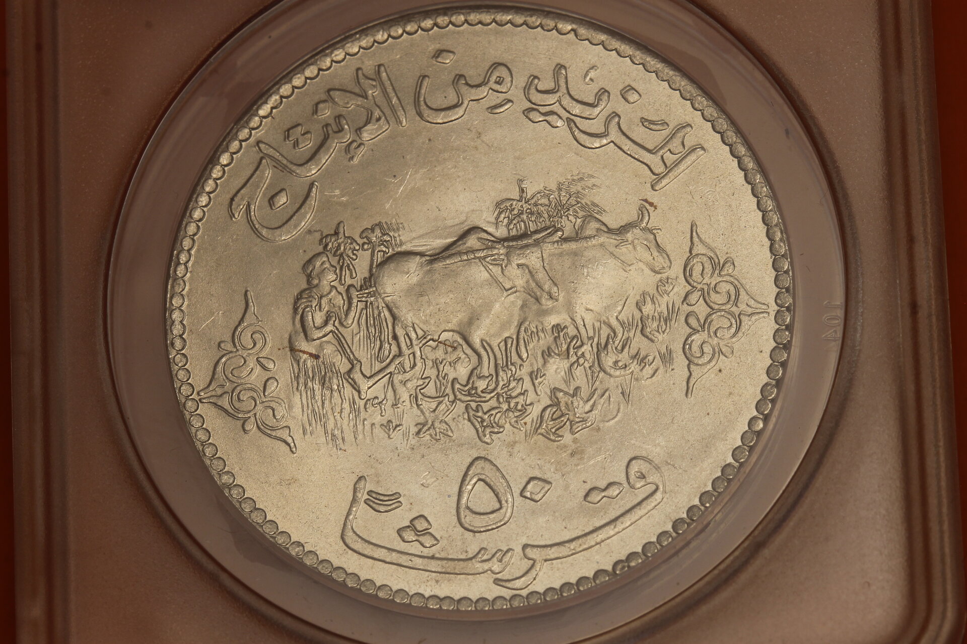 This coin was ANACS conserved Here is the original condition http://images.mrbrklyn.com/coins/food_for_all_1972/50_piastres_1972_Sudan_o.png?width=1024 http://images.mrbrklyn.com/coins/food_for_all_1972/50_piastres_1972_Sudan_r.png?width=1024