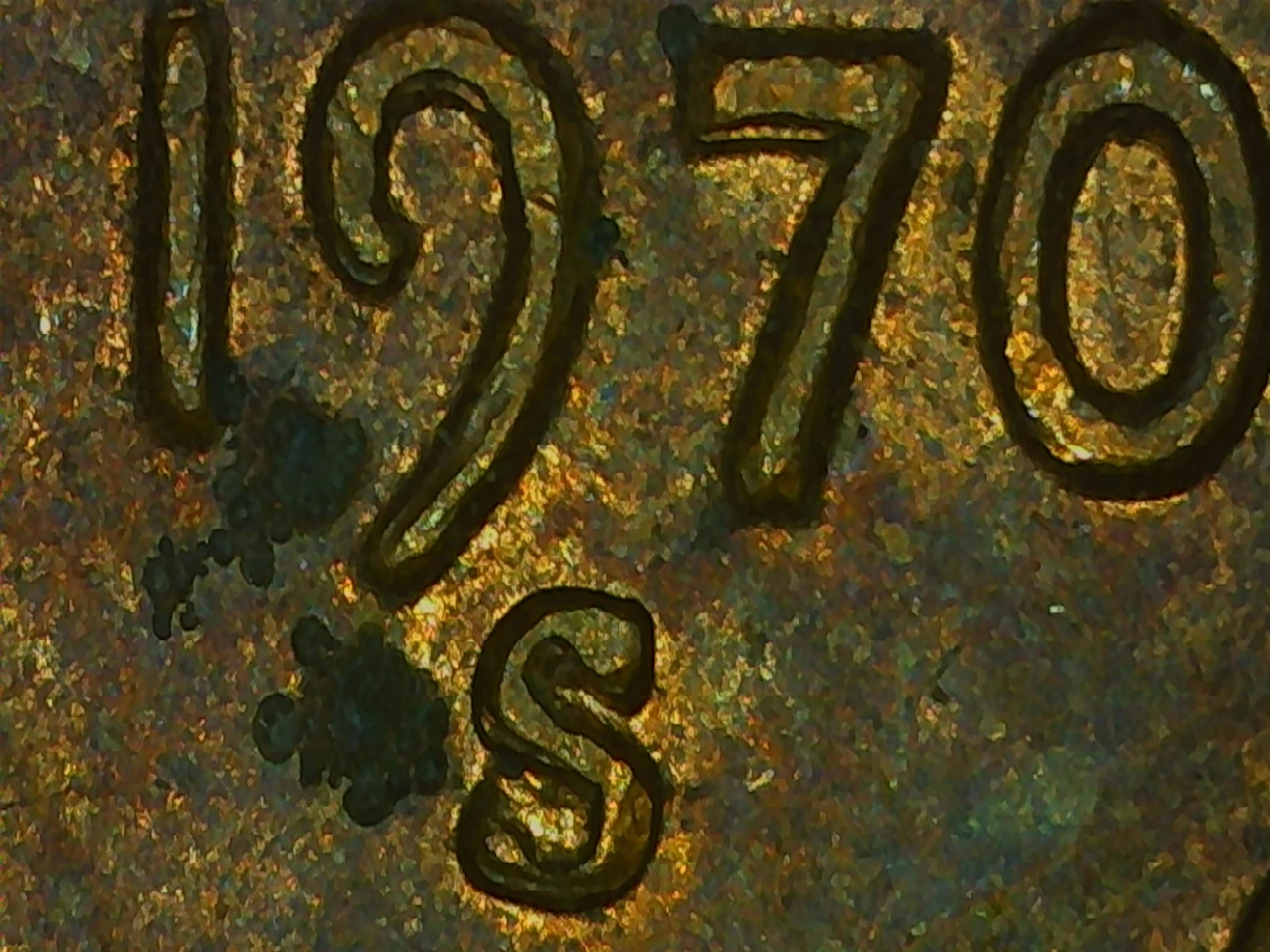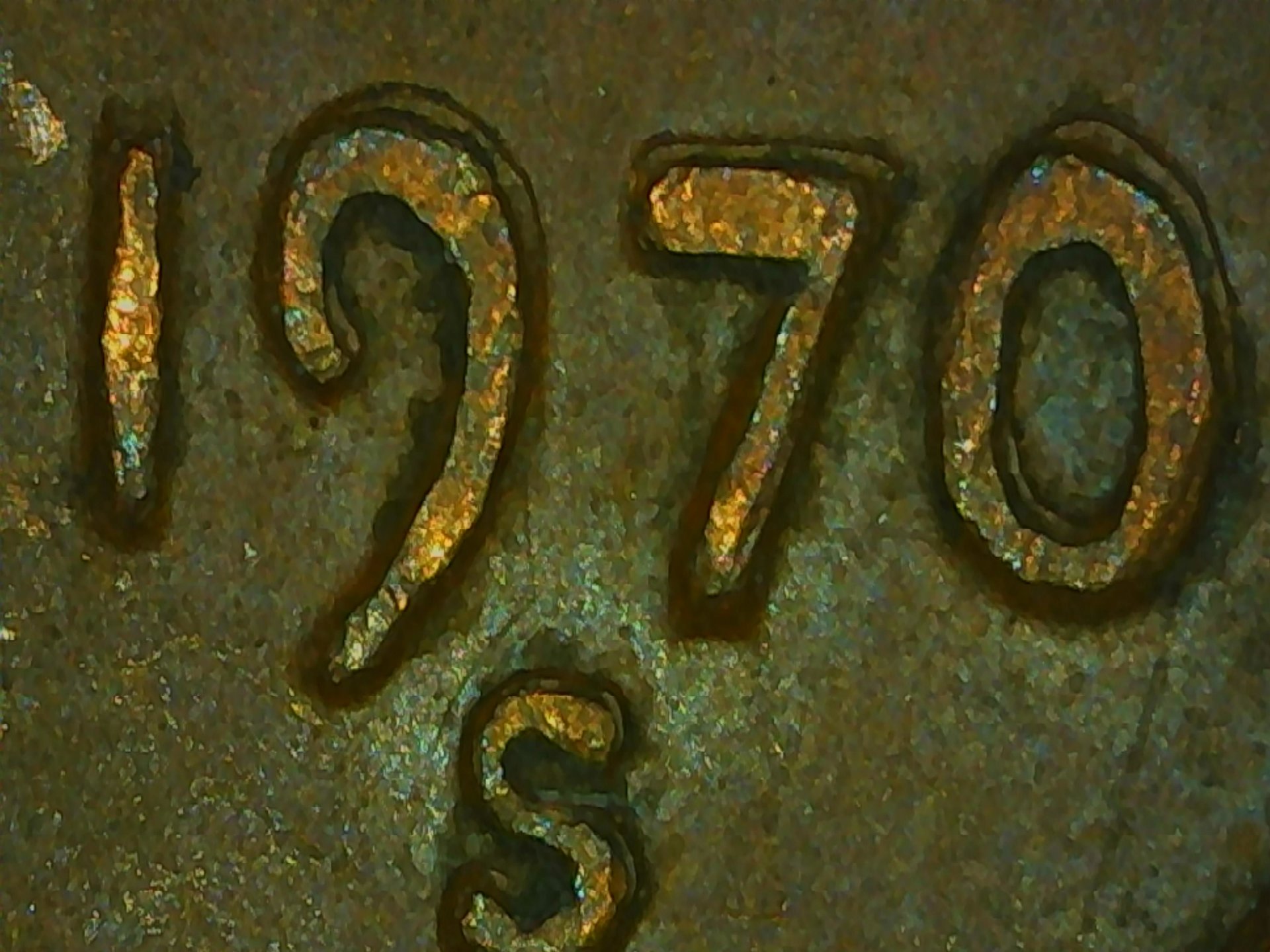 No, No, and None. Mechanical doubling can be quite severe in late 60S-early 70S. Here is a MDD from 1969 showing the mint mark. If you look at the date it is similar to yours, but I do like the fantasy triple S even if it is damage. looking at very acute angle from the side