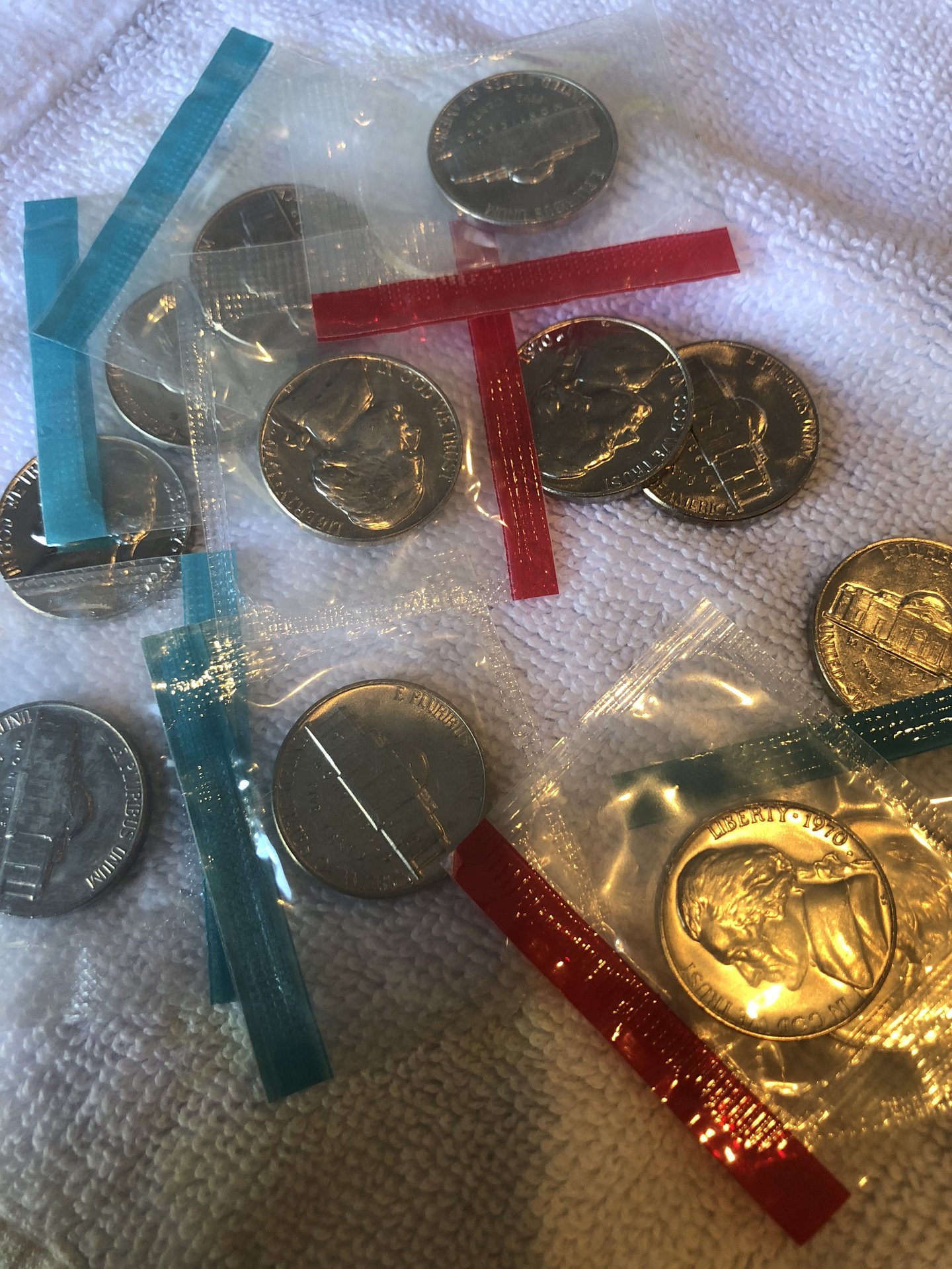 All these came as in the picture. Did they put proof coins in these wrappers? None of them look like proofs they all appear to be weak business strikes. Out of 40 nickels I only found 2 with the skinny S so did they hit the business strike with the proof S?